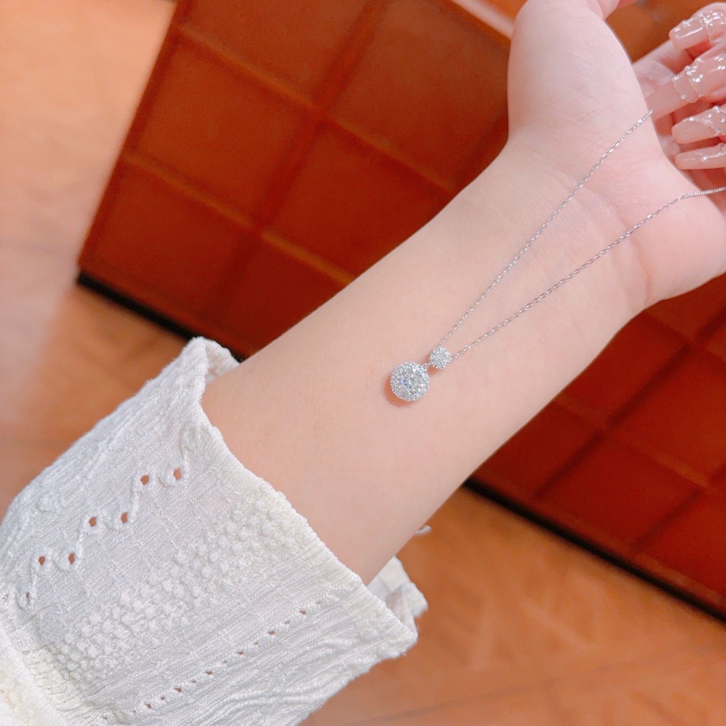 Nickelfreies Silber Moissanit Kette Leichter Luxus Standesamt Gold