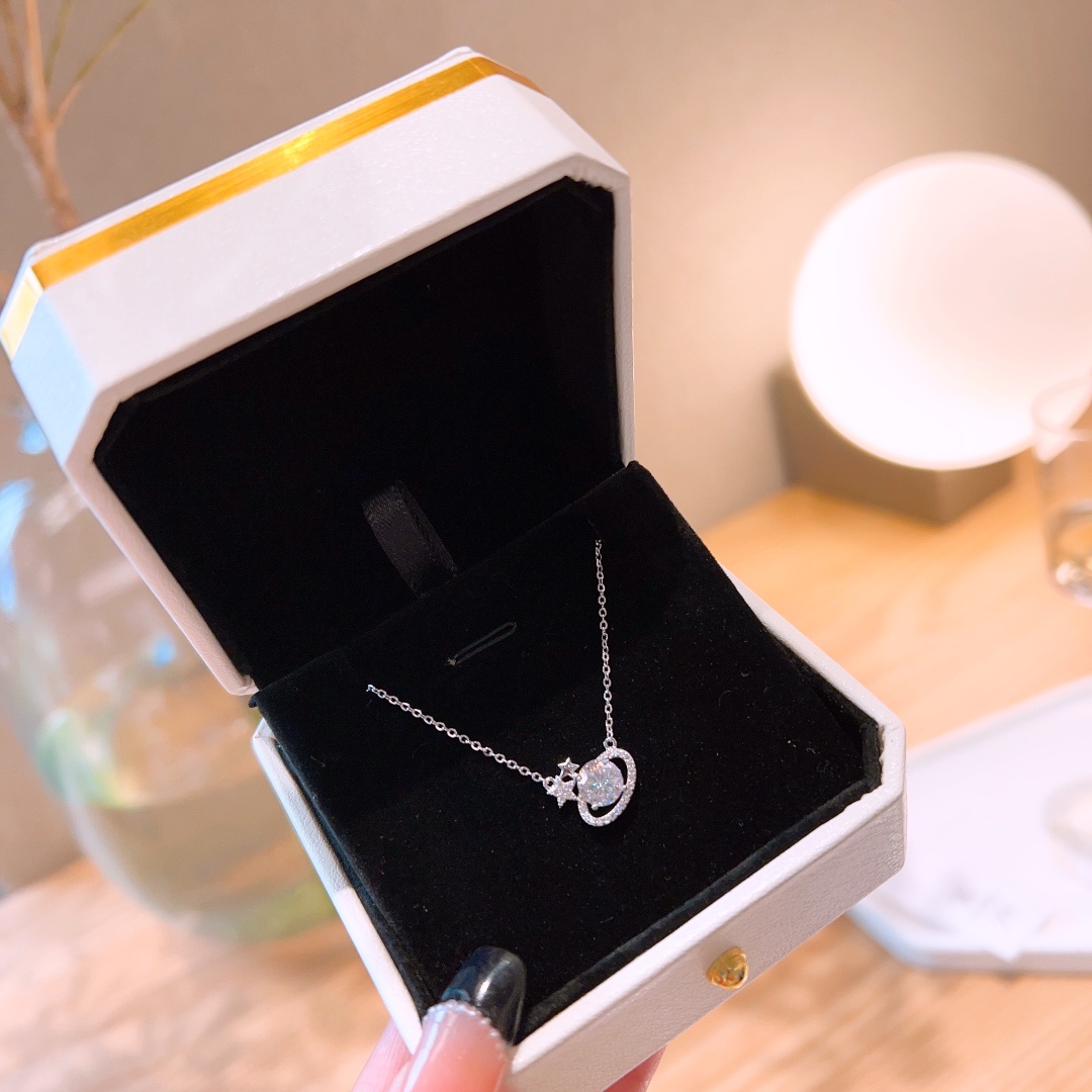 Nickelfreies Silber Moissanit Kette Süß & cool Jahrestag Gold