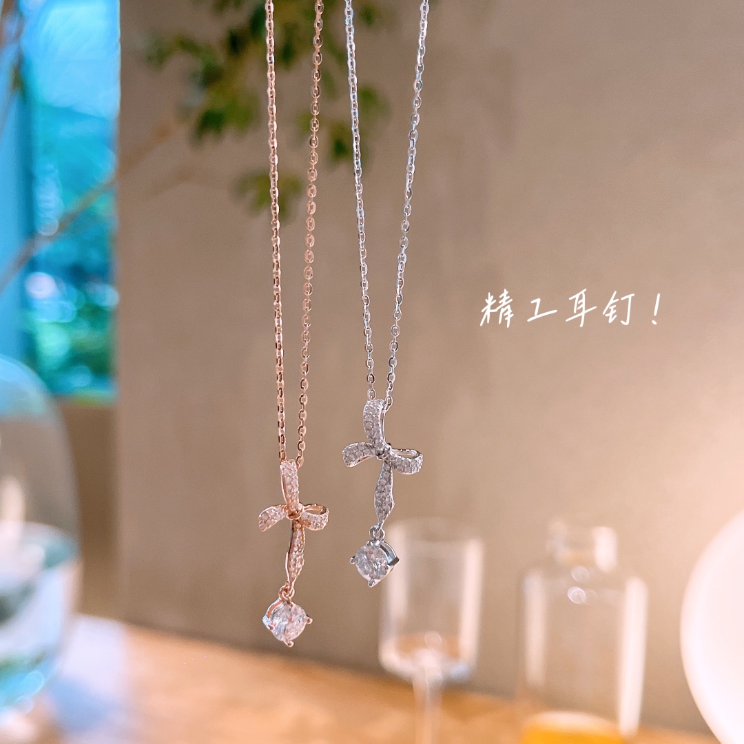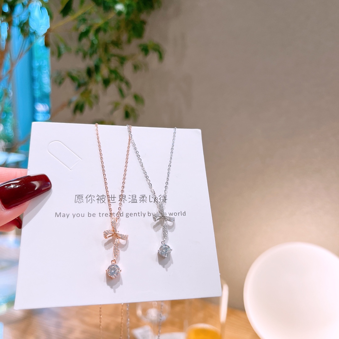 Hochglanzpoliertes Silber Moissanit Kette Leichter Luxus Hochzeit