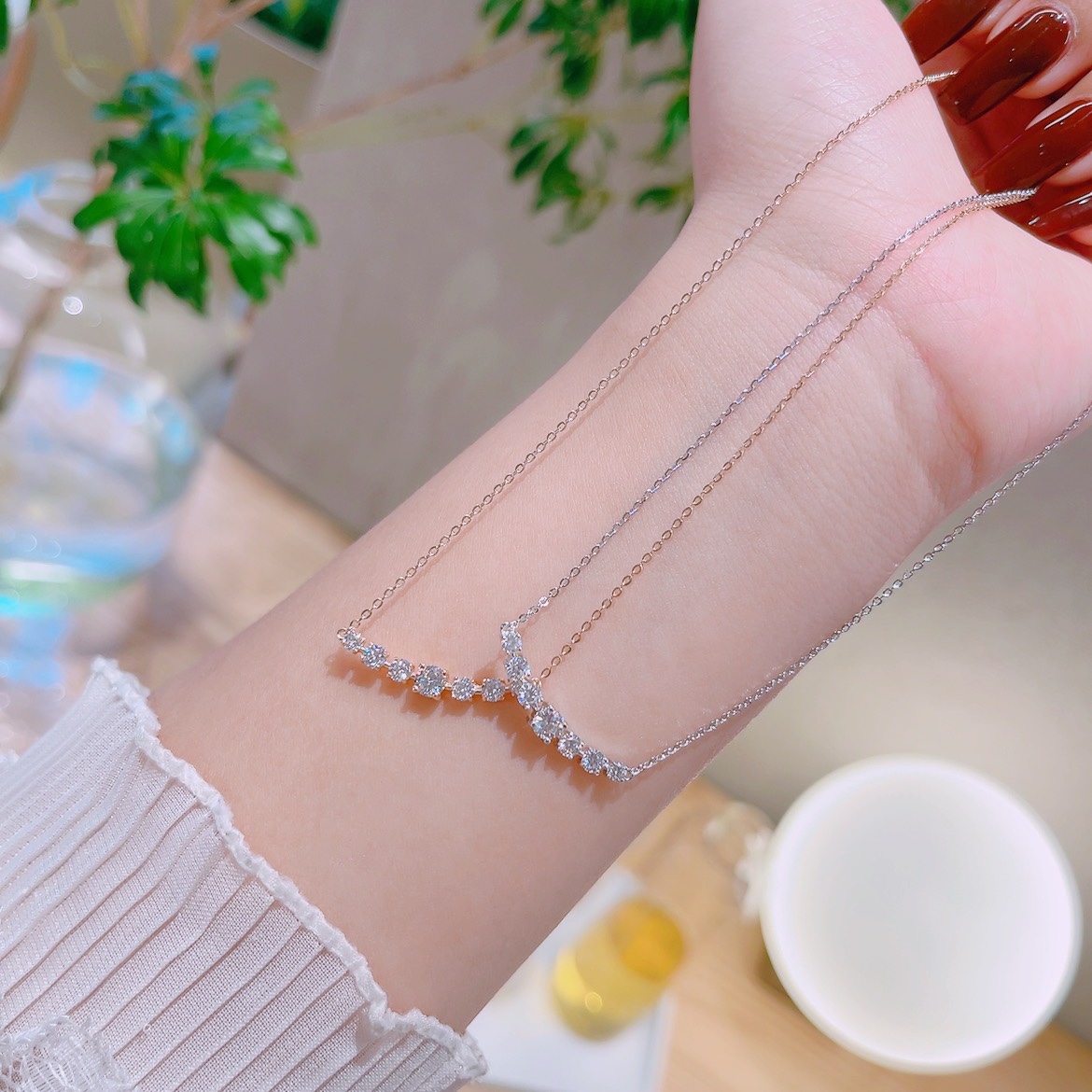 S925 Sterlingsilber Moissanit Kette Elegant Jahrestag Silber