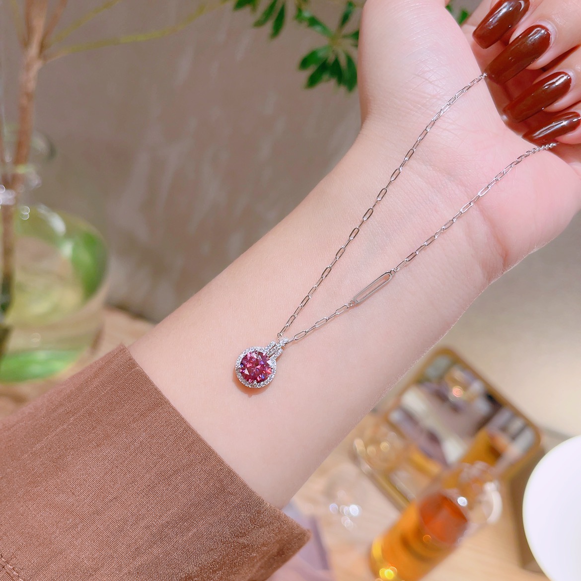 Hochglanzpoliertes Silber Moissanit Kette Intellektuell Neujahr Silber