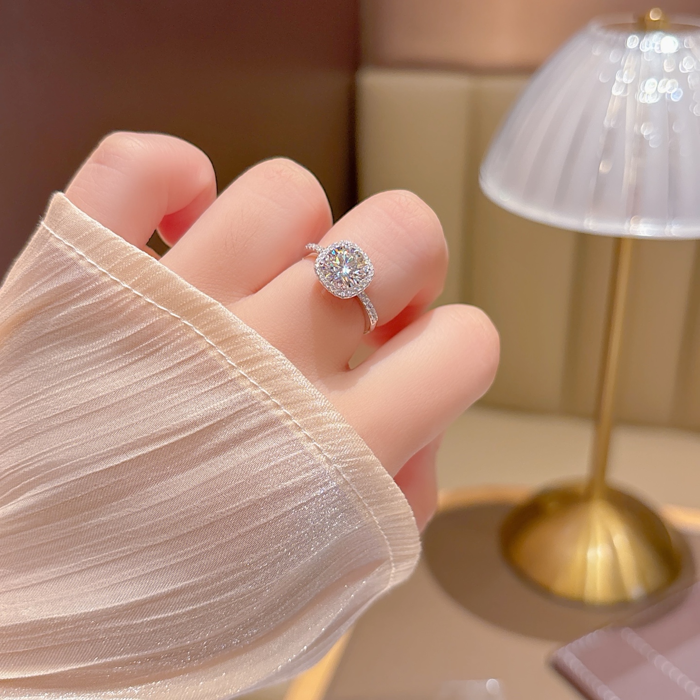 Hypoallergenes Silber Moissanit Ring Niedlich Frühlingsfest Gold