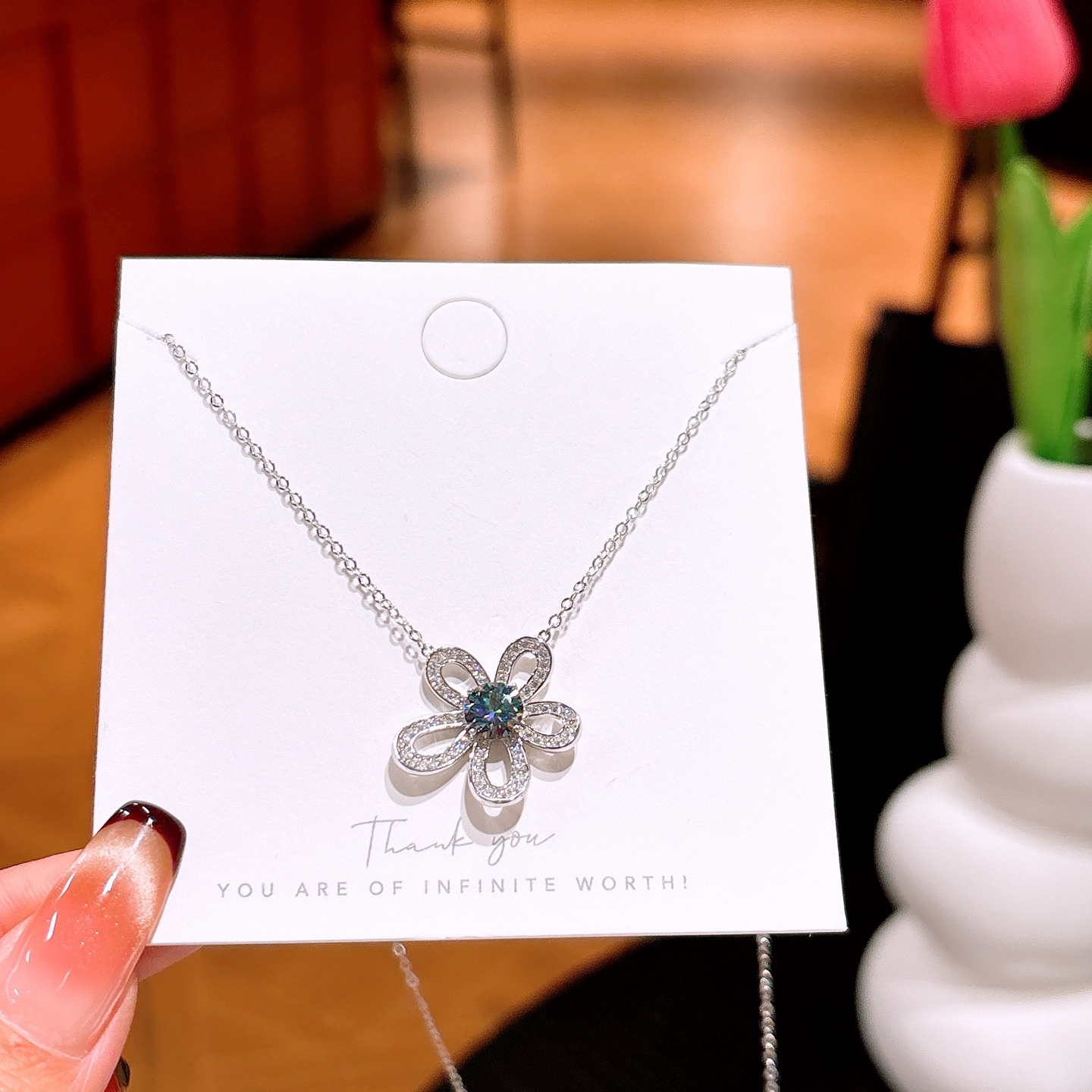S925 Sterlingsilber Moissanit Kette Filigran Hochzeitsgeschenk Gold