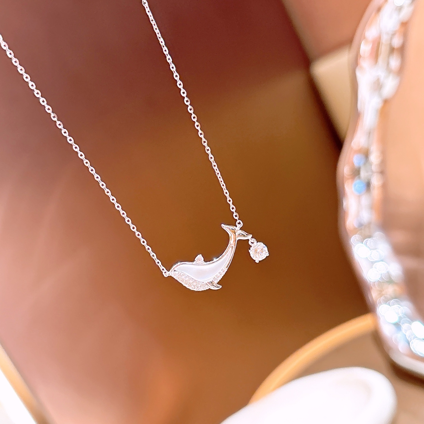 Hochglanzpoliertes Silber Moissanit Kette Leichter Luxus Muttergeburtstag