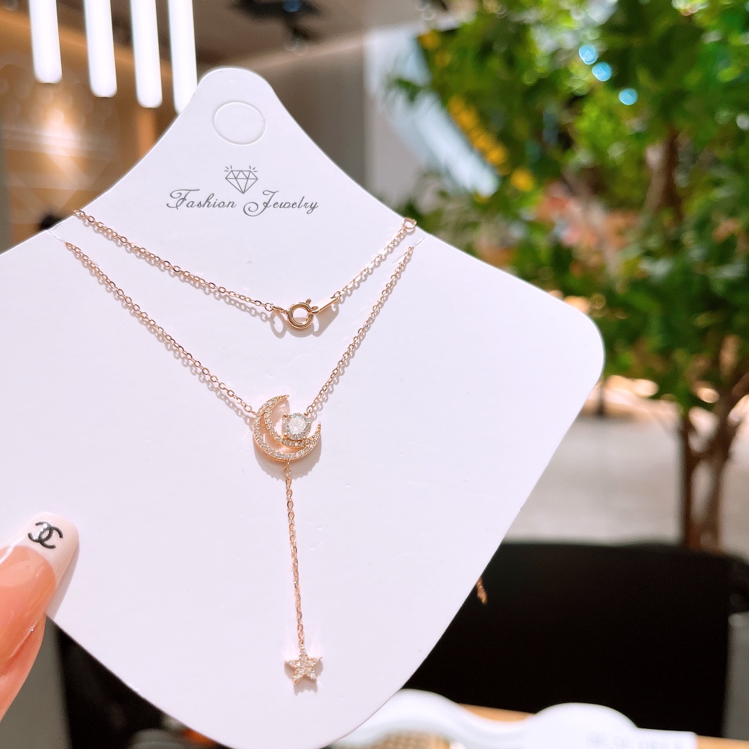 Nickelfreies Silber Moissanit Kette Verspielt Heiratsantrag Gold