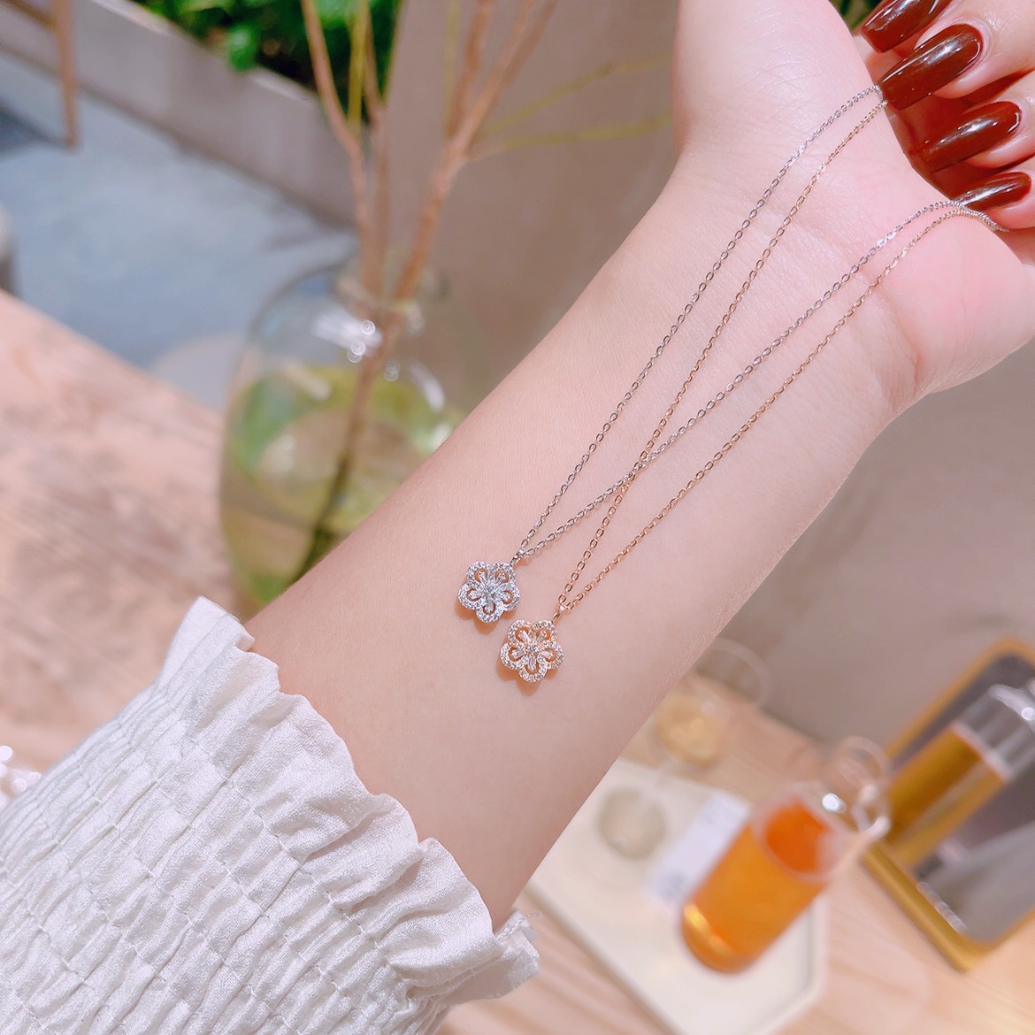 Feinsilber Kette Lebendig Frühlingsfest Gold