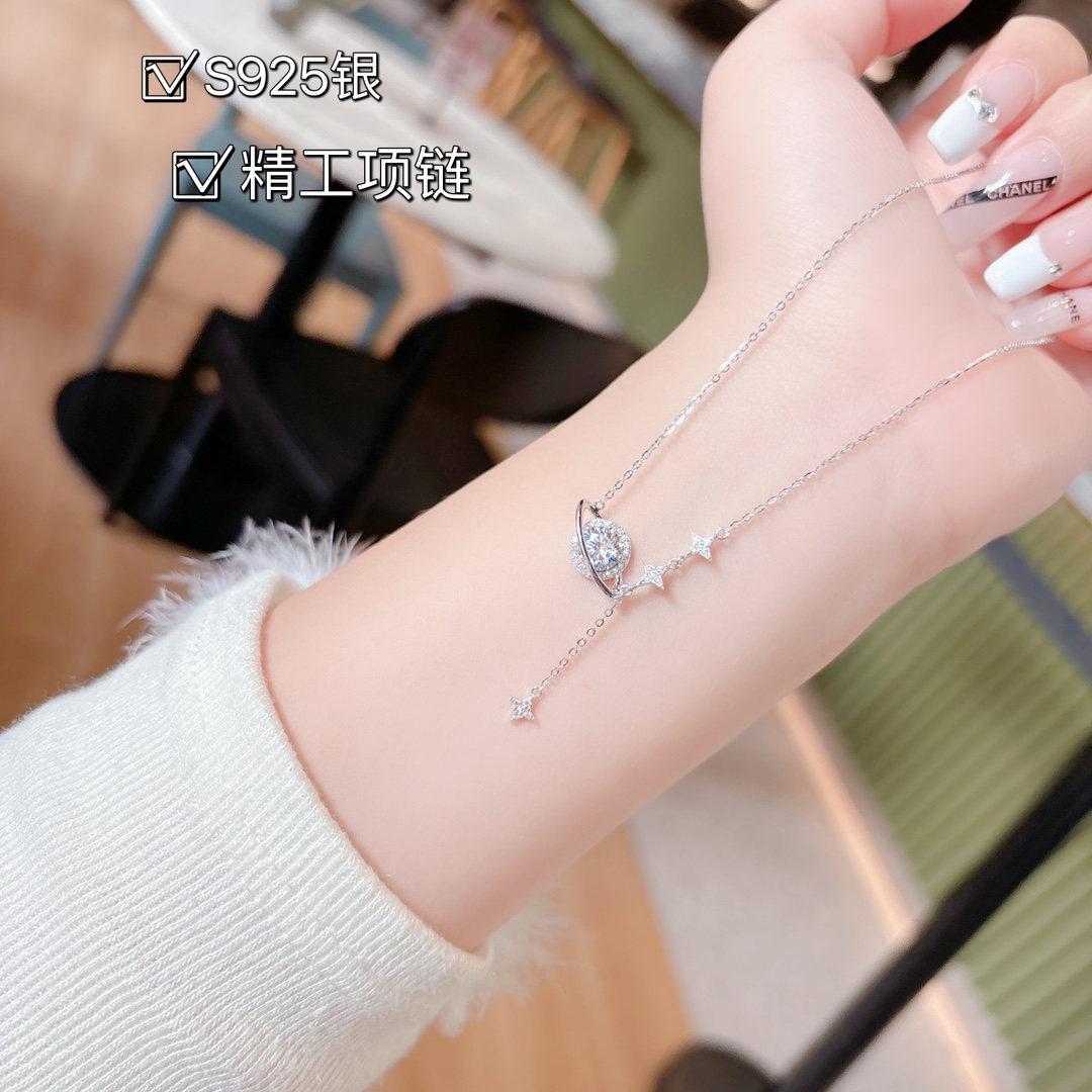 Hochglanzpoliertes Silber Moissanit Kette Hochwertig Verlobung Silber
