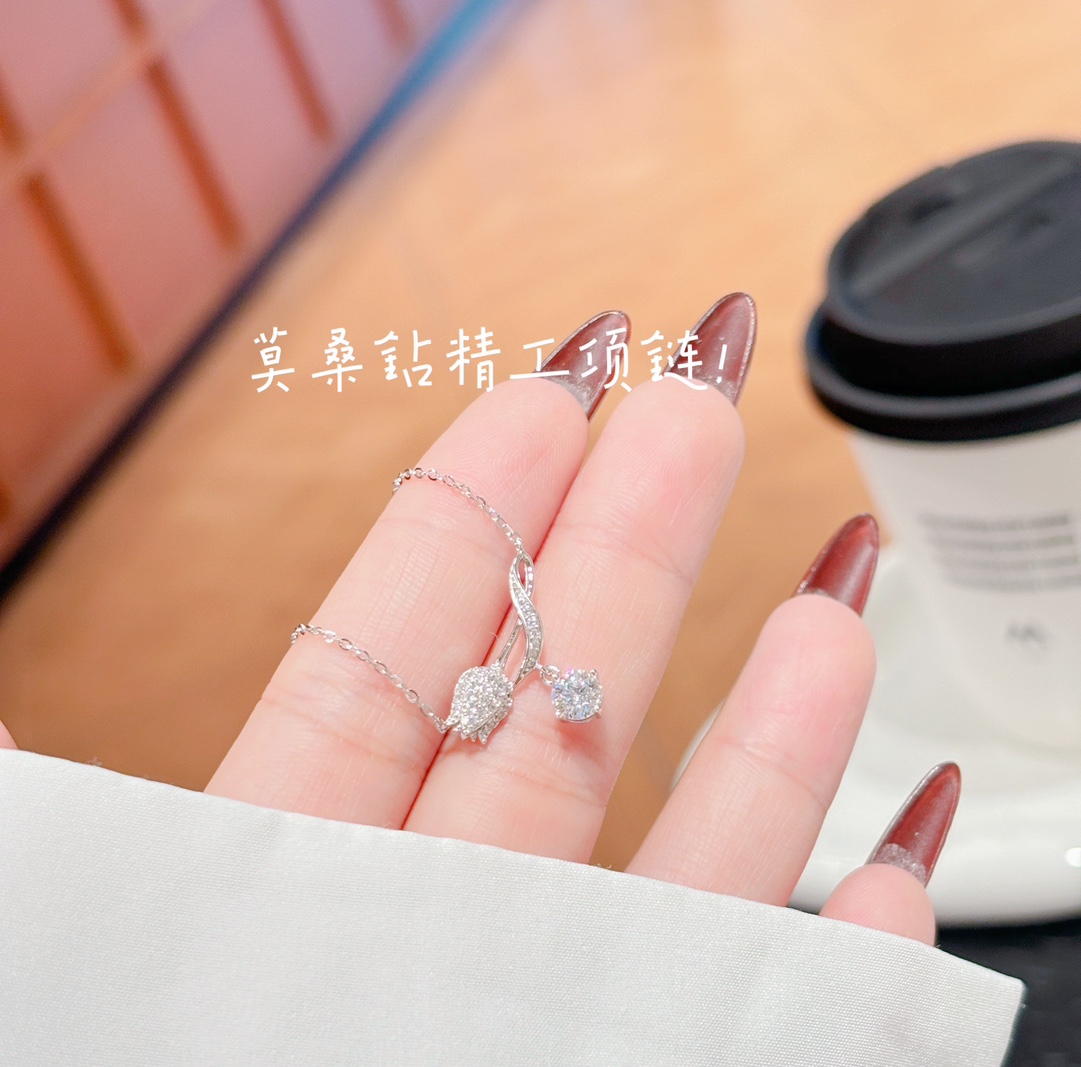 Massivsilber Moissanit Kette Ätherisch Alltag Silber