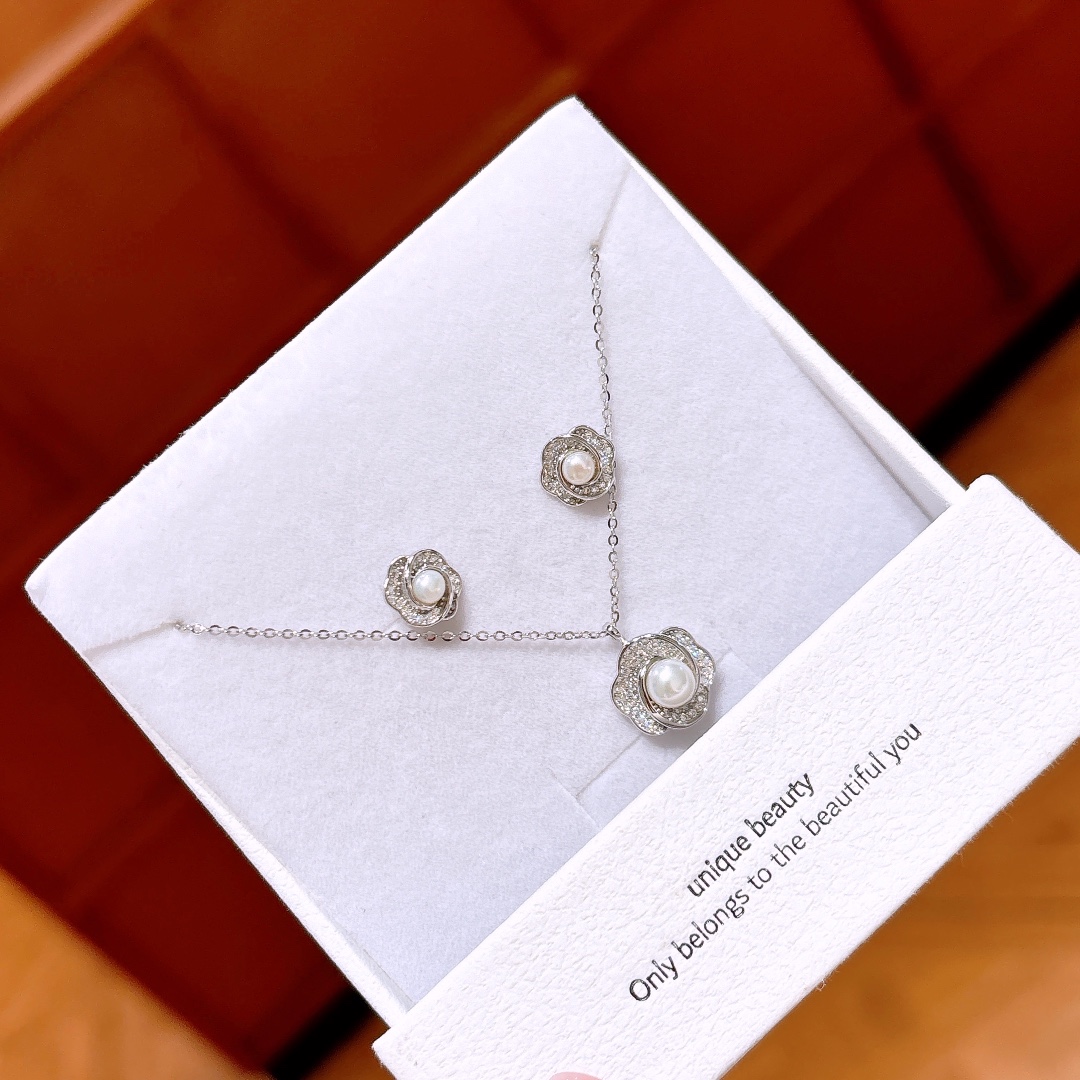 甘い純銀イヤリング&ネックレスセットシルバー 父の日