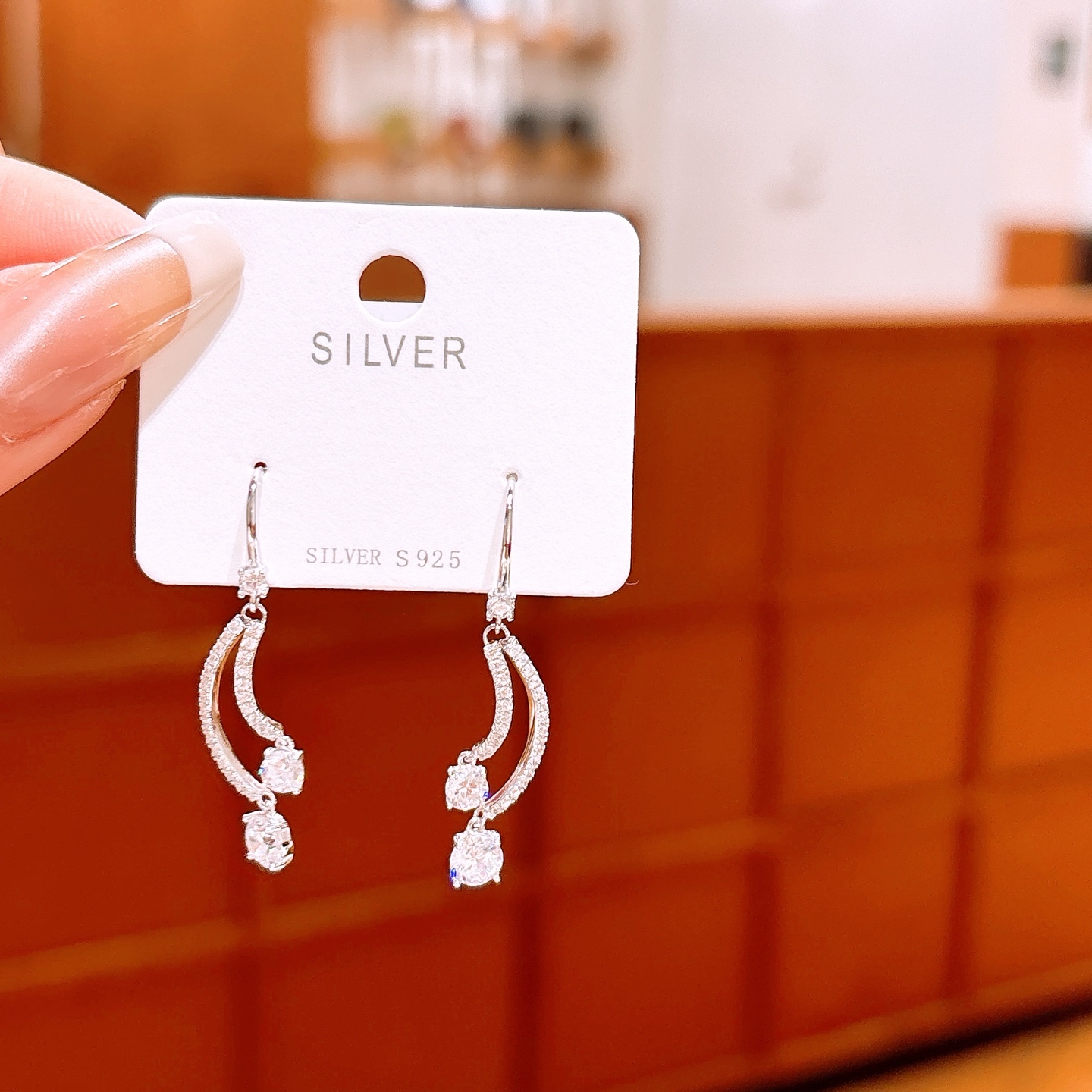 シック低アレルギー銀ドロップ&スレッドイヤリングシルバー バレンタインデー