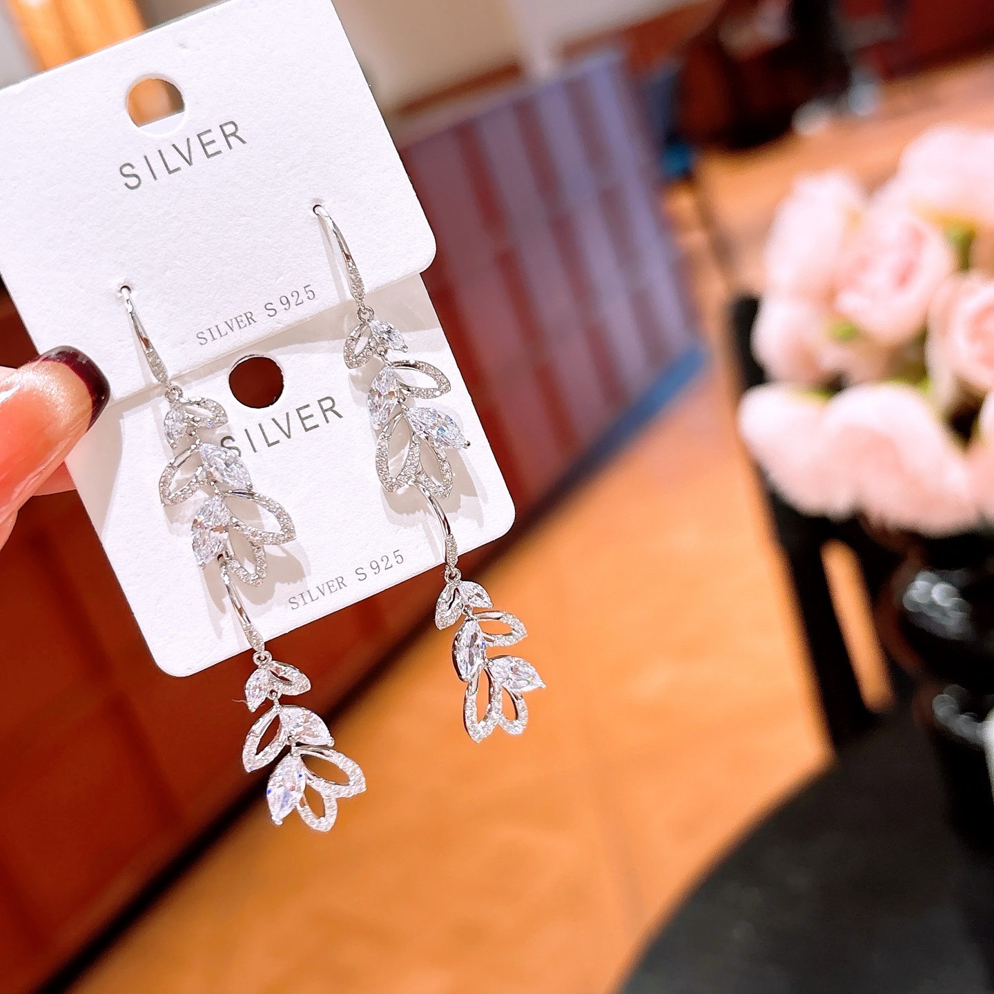 ロマンチックニッケル無添加銀ドロップ&スレッドイヤリングゴールド ウェディングギフト