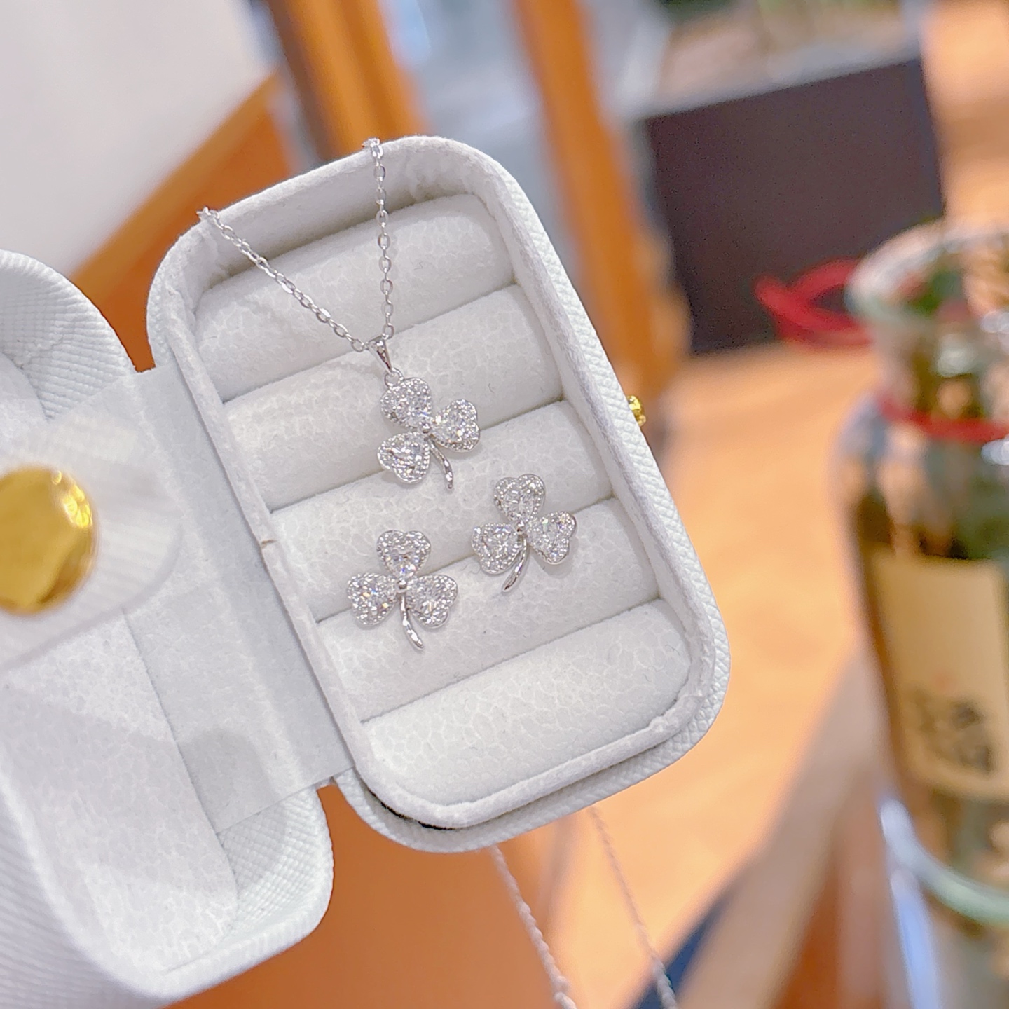 フレッシュS925スターリングシルバーイヤリング&ネックレスセットゴールド 新築祝い