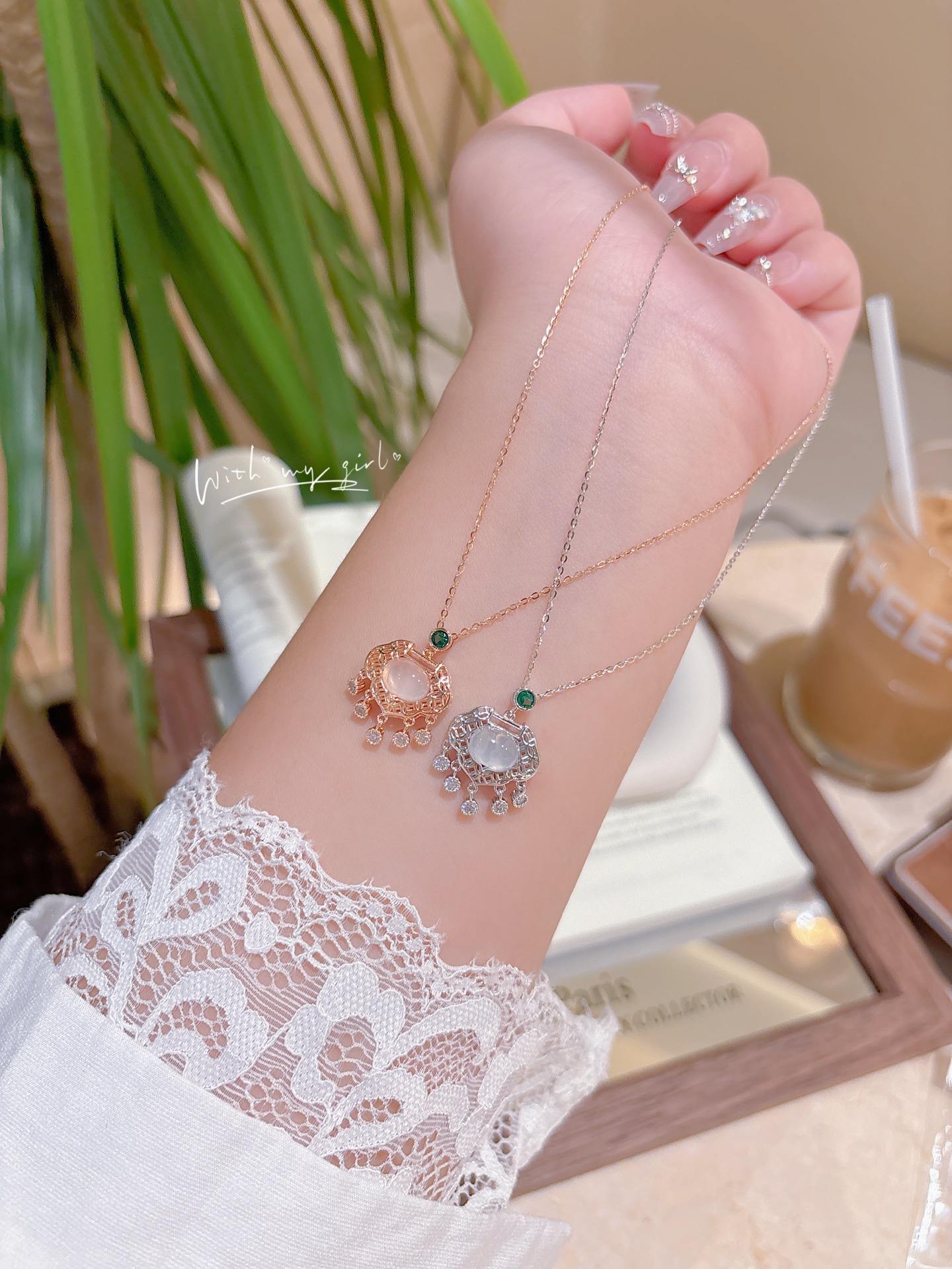 グリーンカルセドニーネックレス