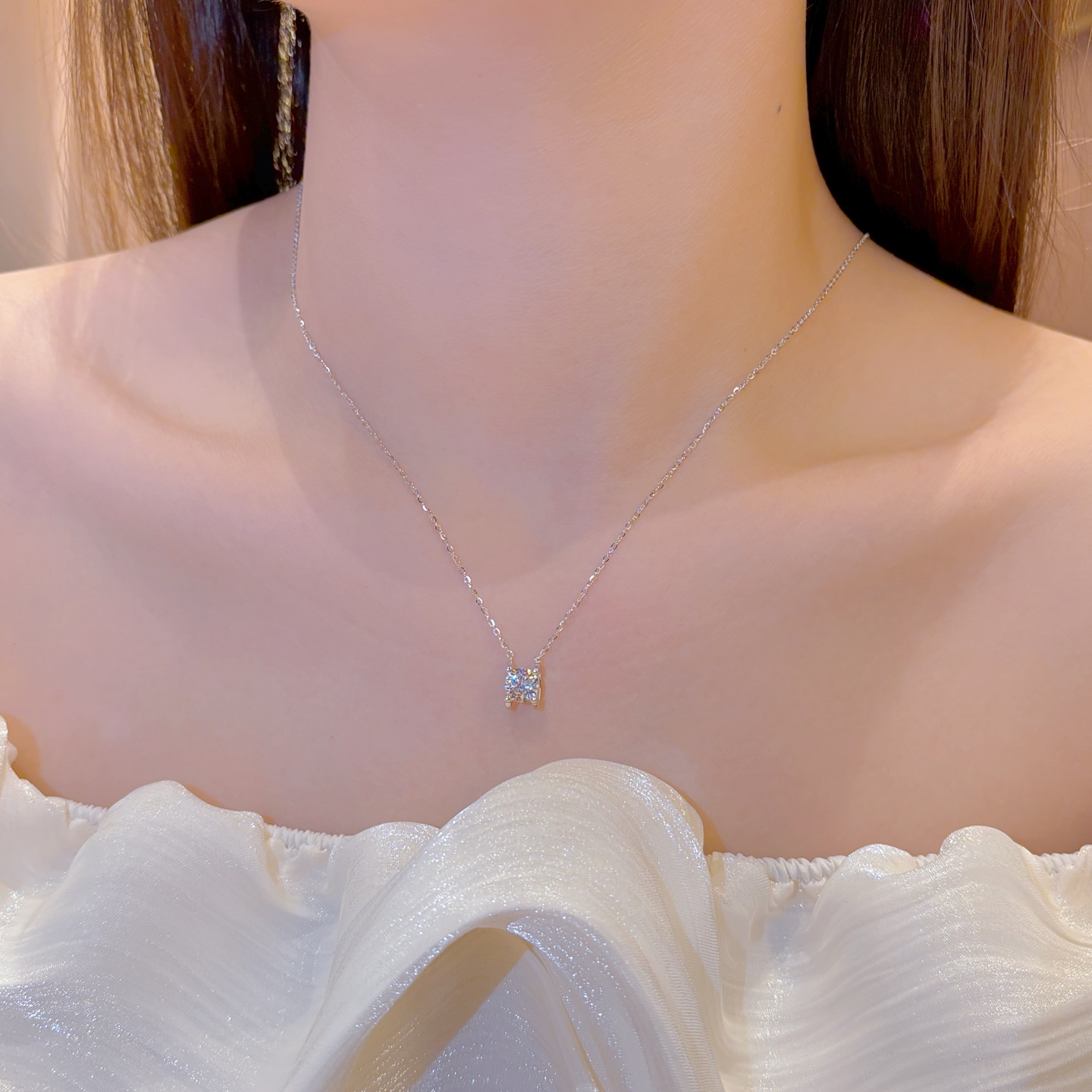 優しい純銀モアッサナイトネックレスシルバー 春節