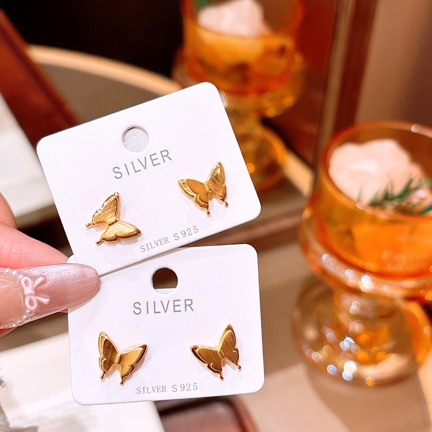 ロマンチックS925スターリングシルバーイヤリングゴールド ウェディング