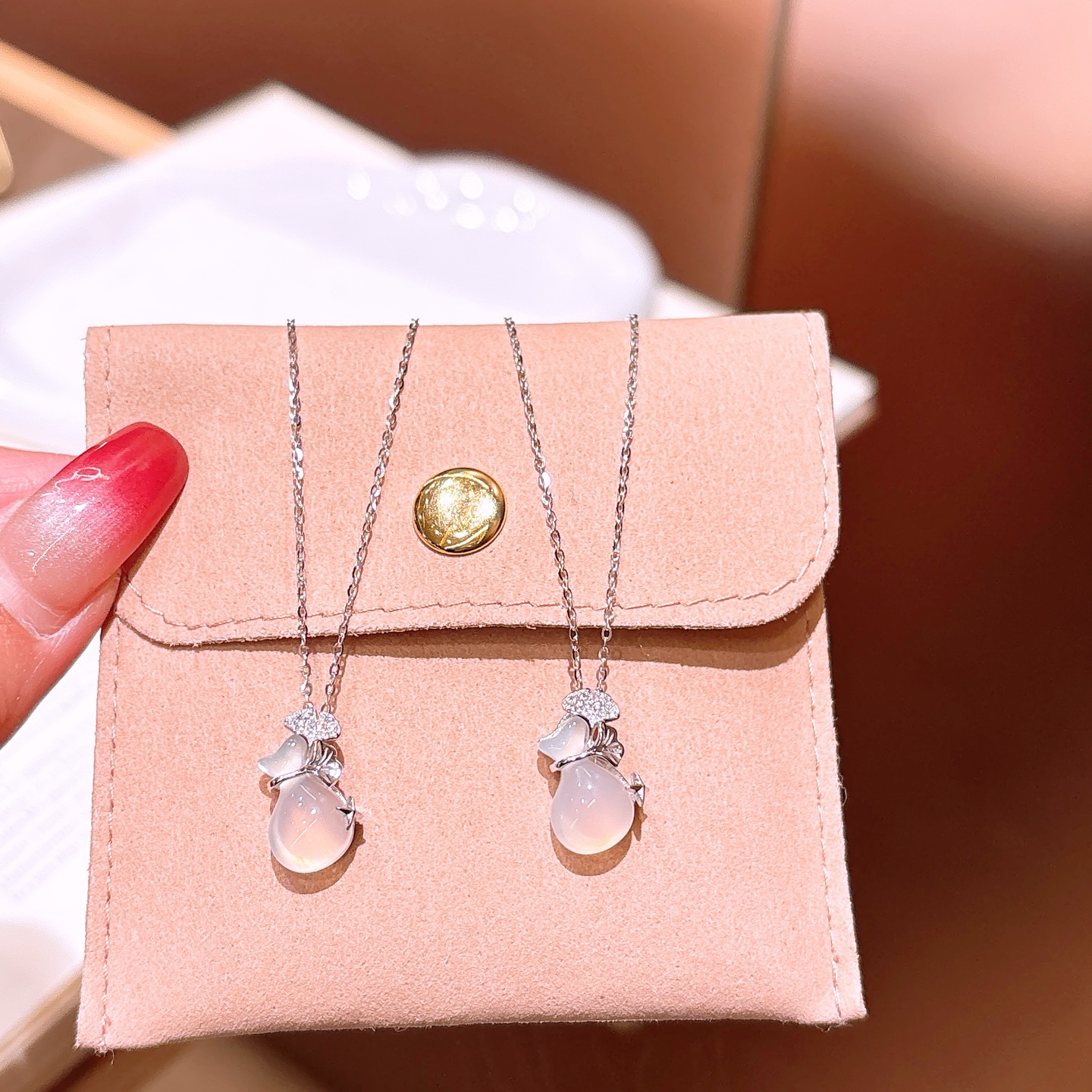 ピンクカルセドニーネックレス