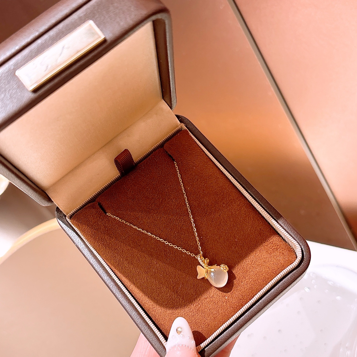 ピンクカルセドニーネックレス