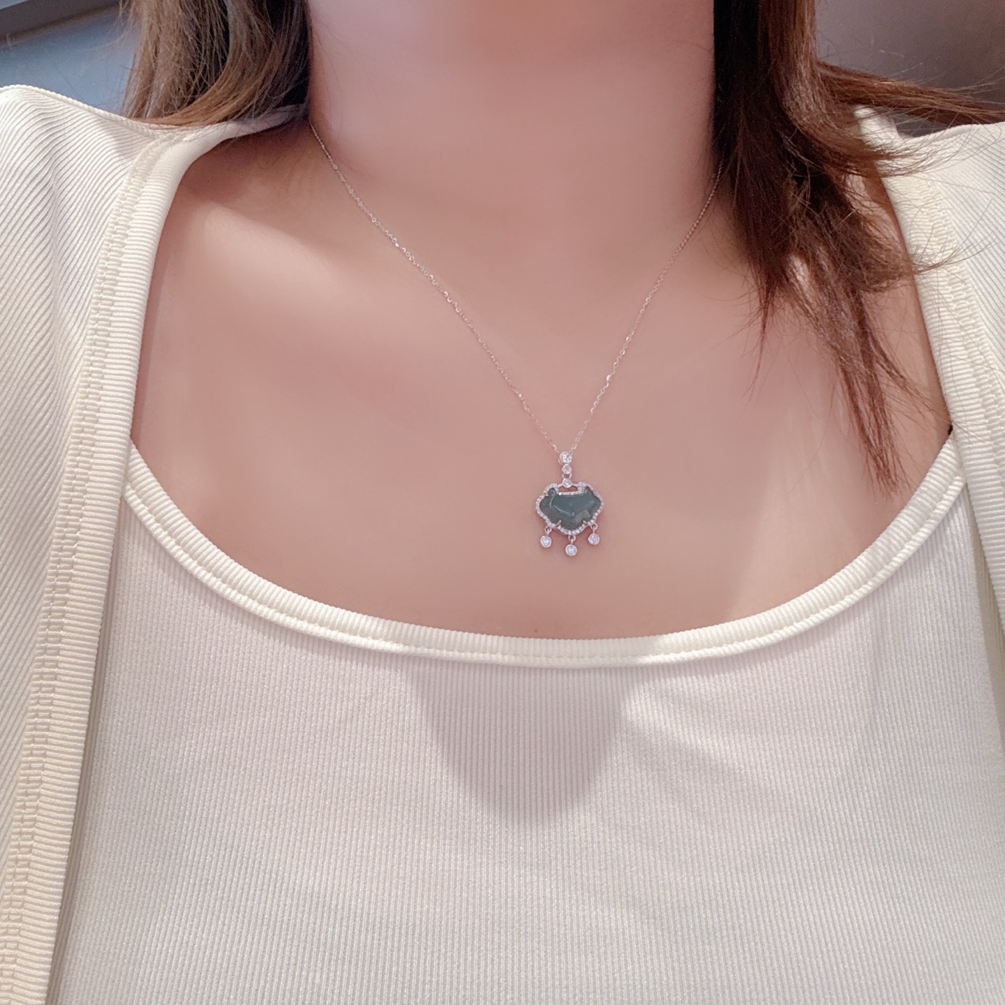 インスタ風高品質シルバーヒスイネックレスゴールド 親友へのプレゼント