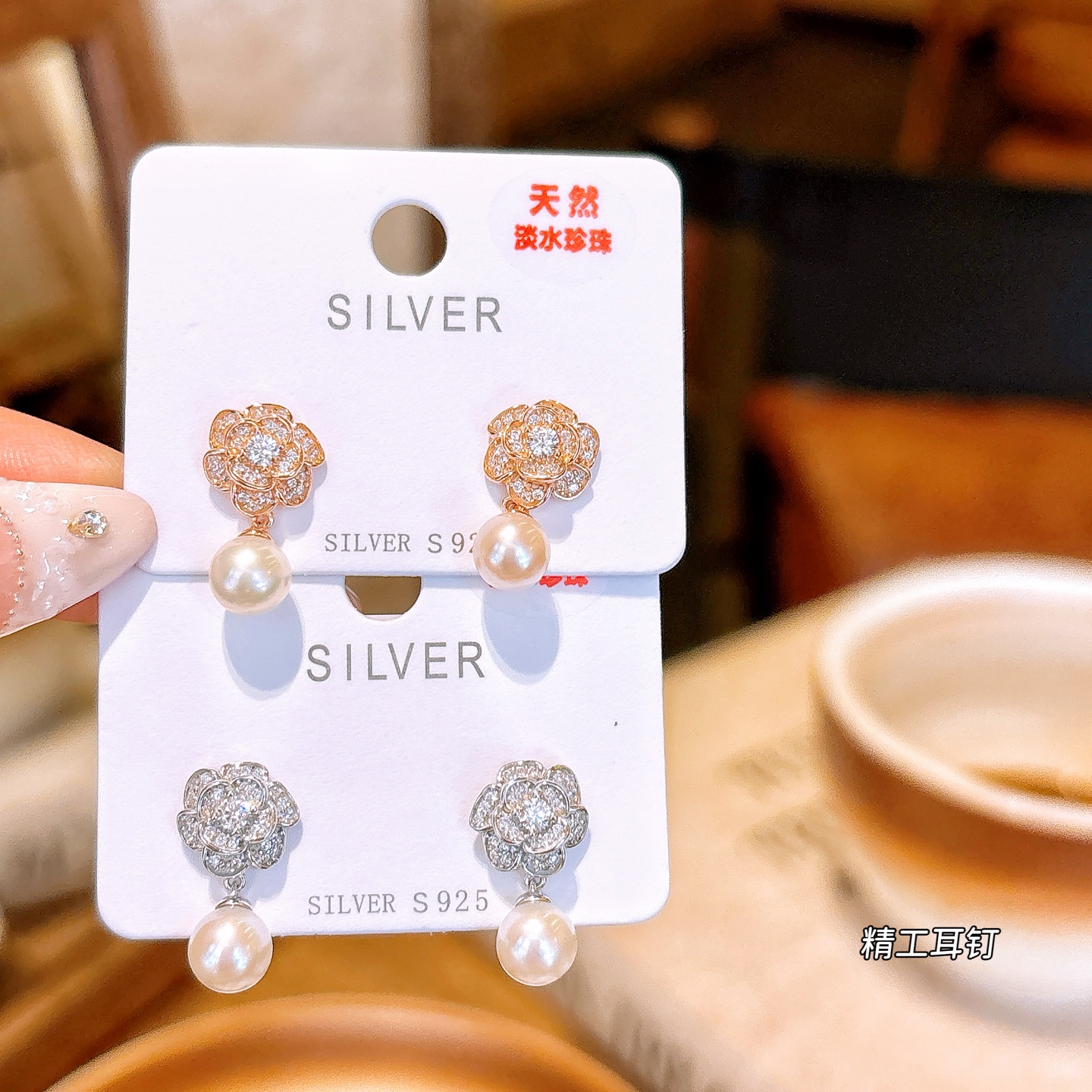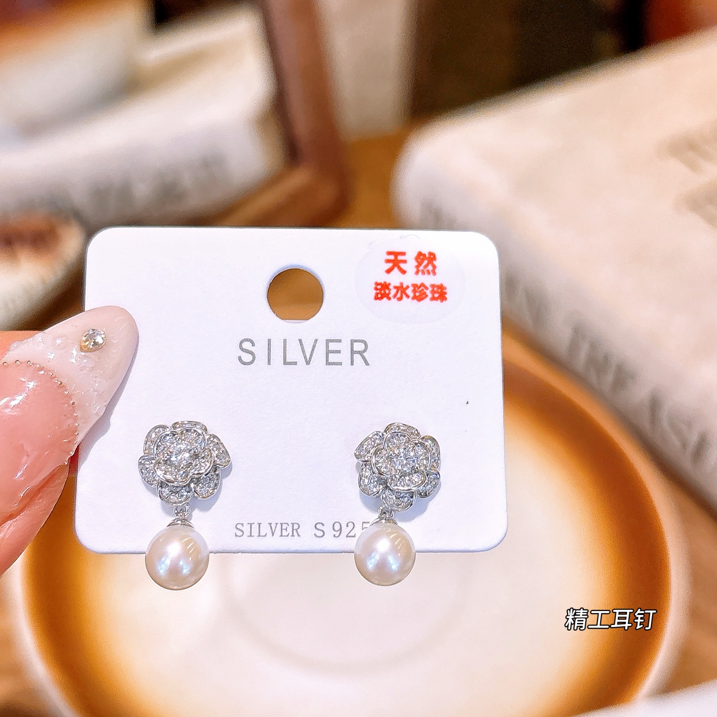 韓国風925シルバー淡水パールスタッドシルバー 春節