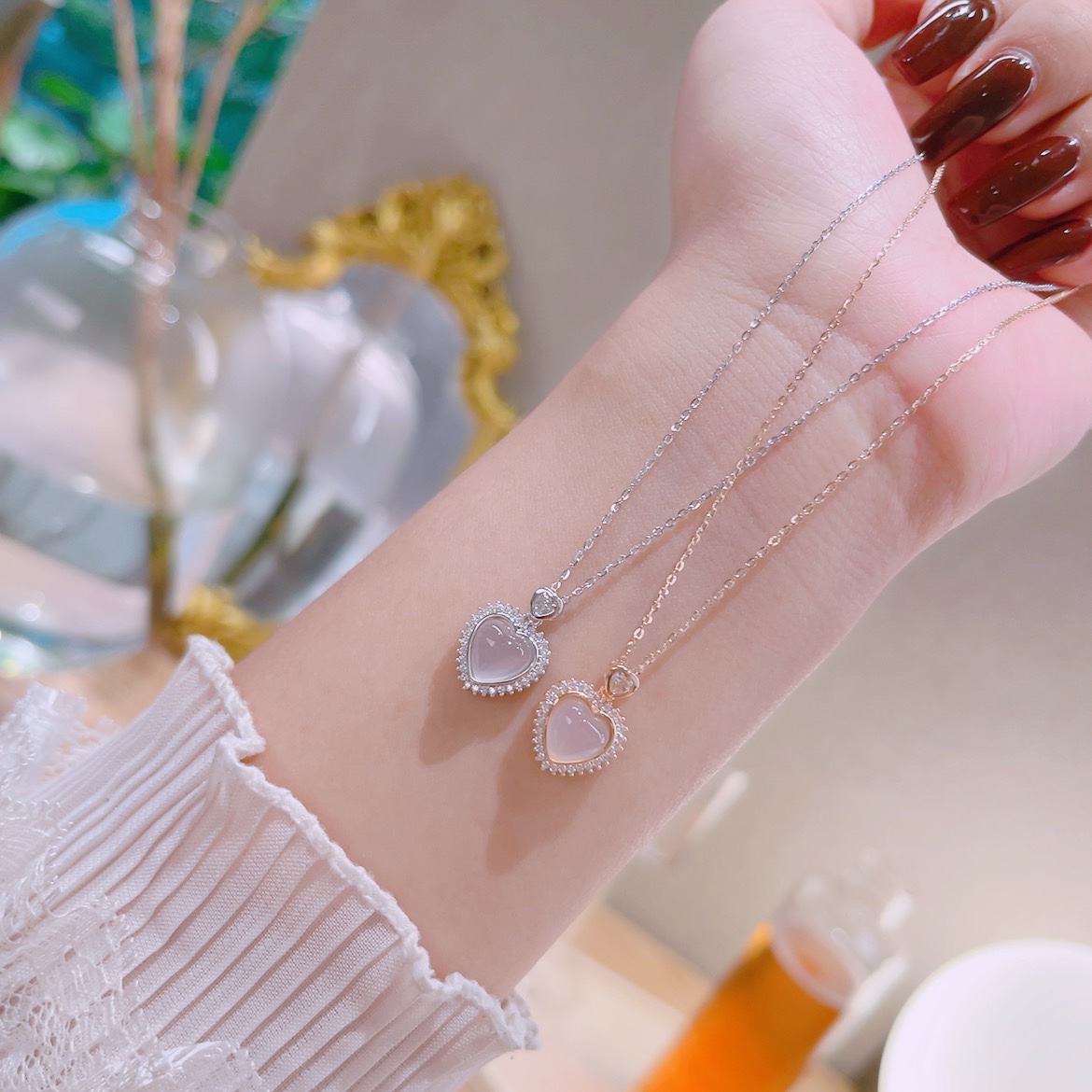 ピンクカルセドニーネックレス