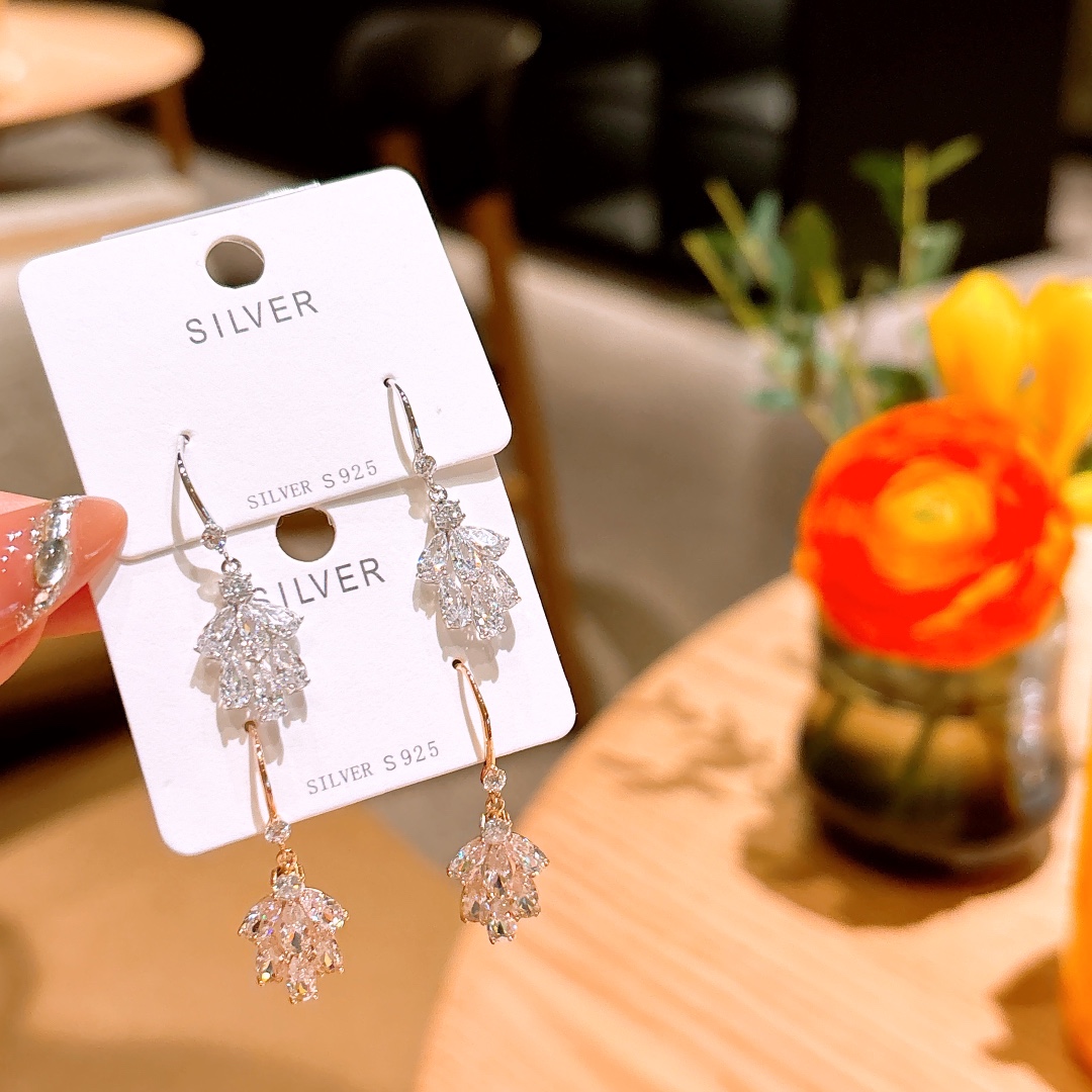 軽やかS925スターリングシルバードロップ&スレッドイヤリングゴールド ウェディングギフト