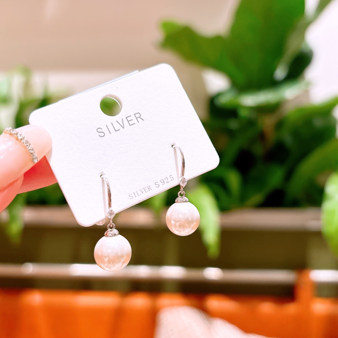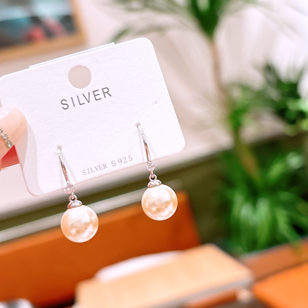ユニークニッケル無添加銀ドロップ&スレッドイヤリングシルバー ウェディングギフト