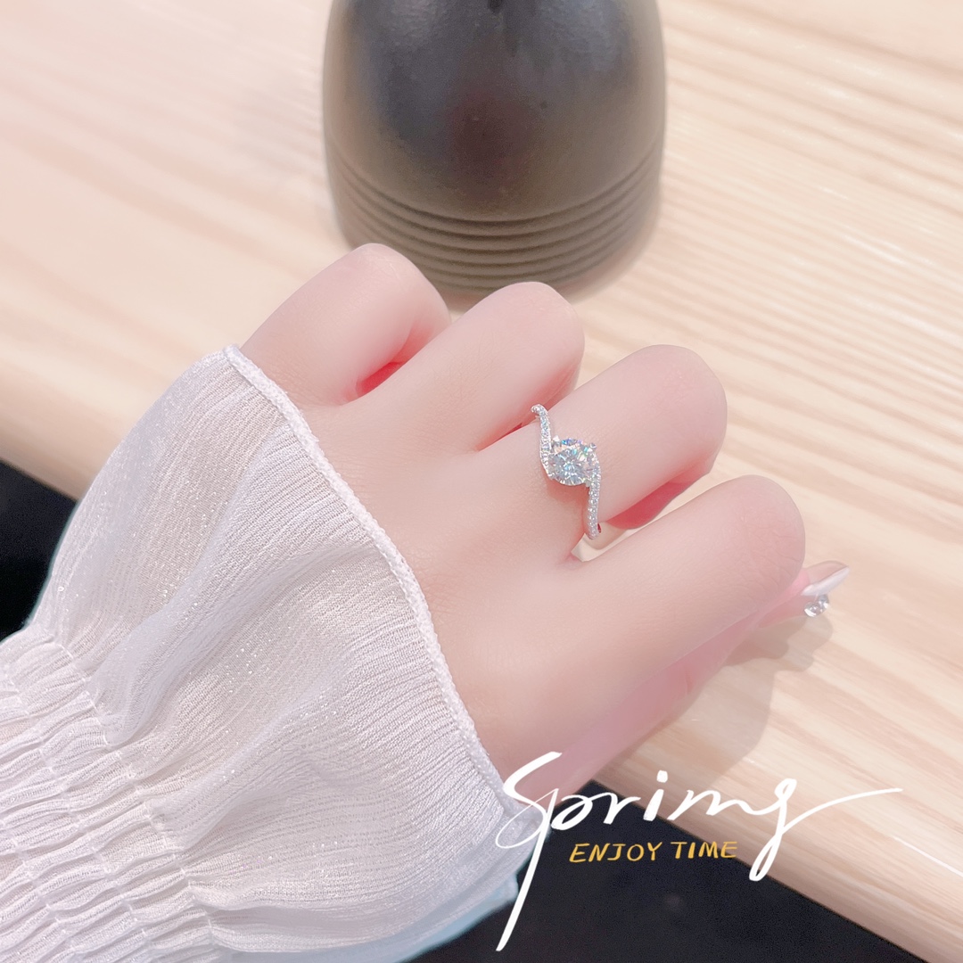 韓国風ファインシルバーモアッサナイトリングシルバー ギフト