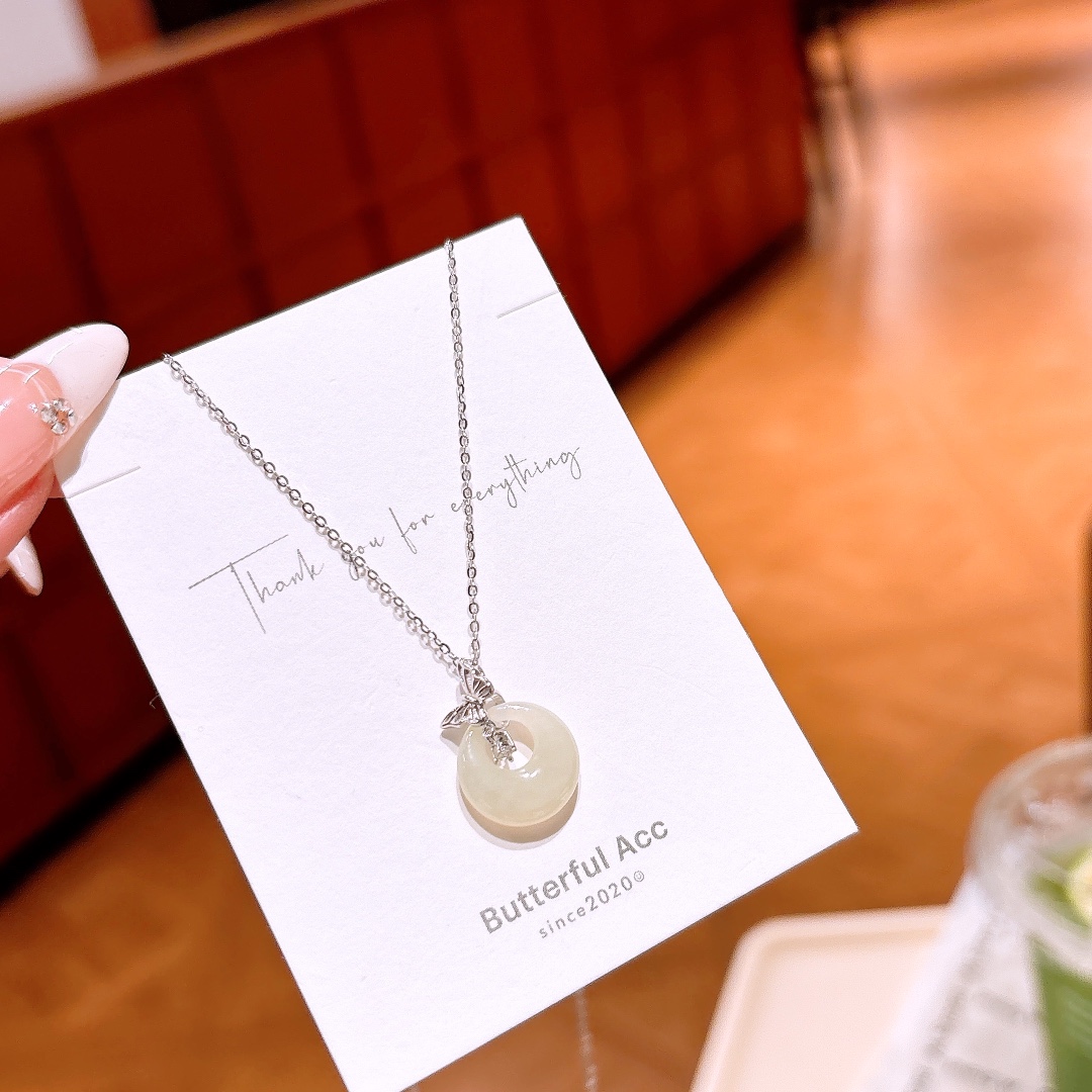 Solid Silver Hetian Jade Necklace Delicate Father's Day Gold