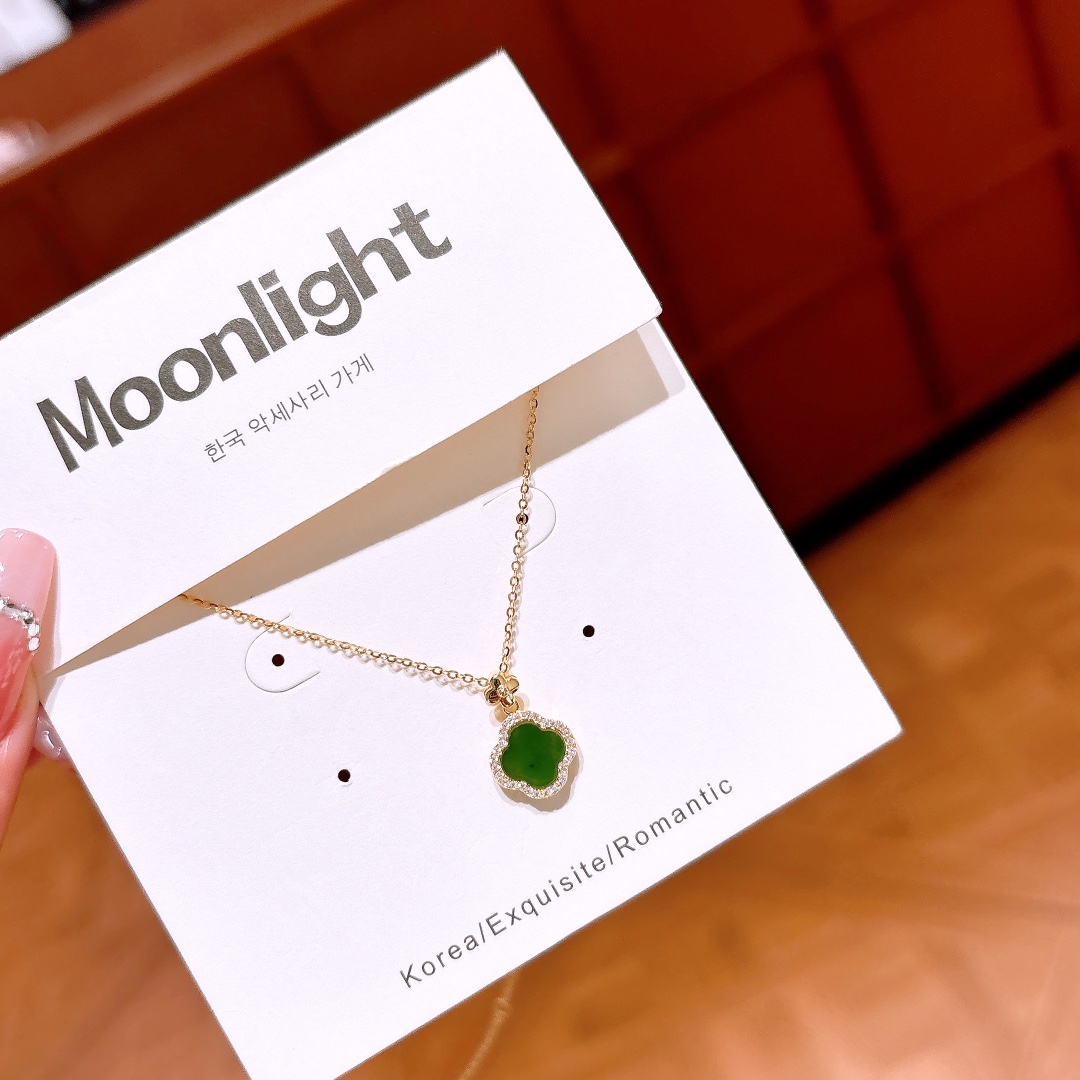 S925 Sterling Silver Jasper Necklace Korean Style Date Night Gold