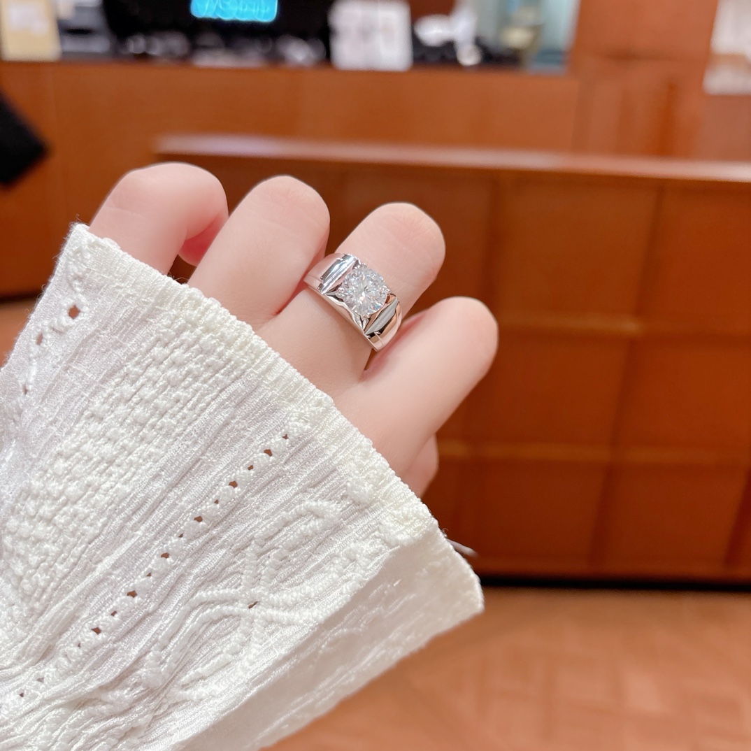 Fine Silver Men's Moissanite Ring Soft Wedding Gold