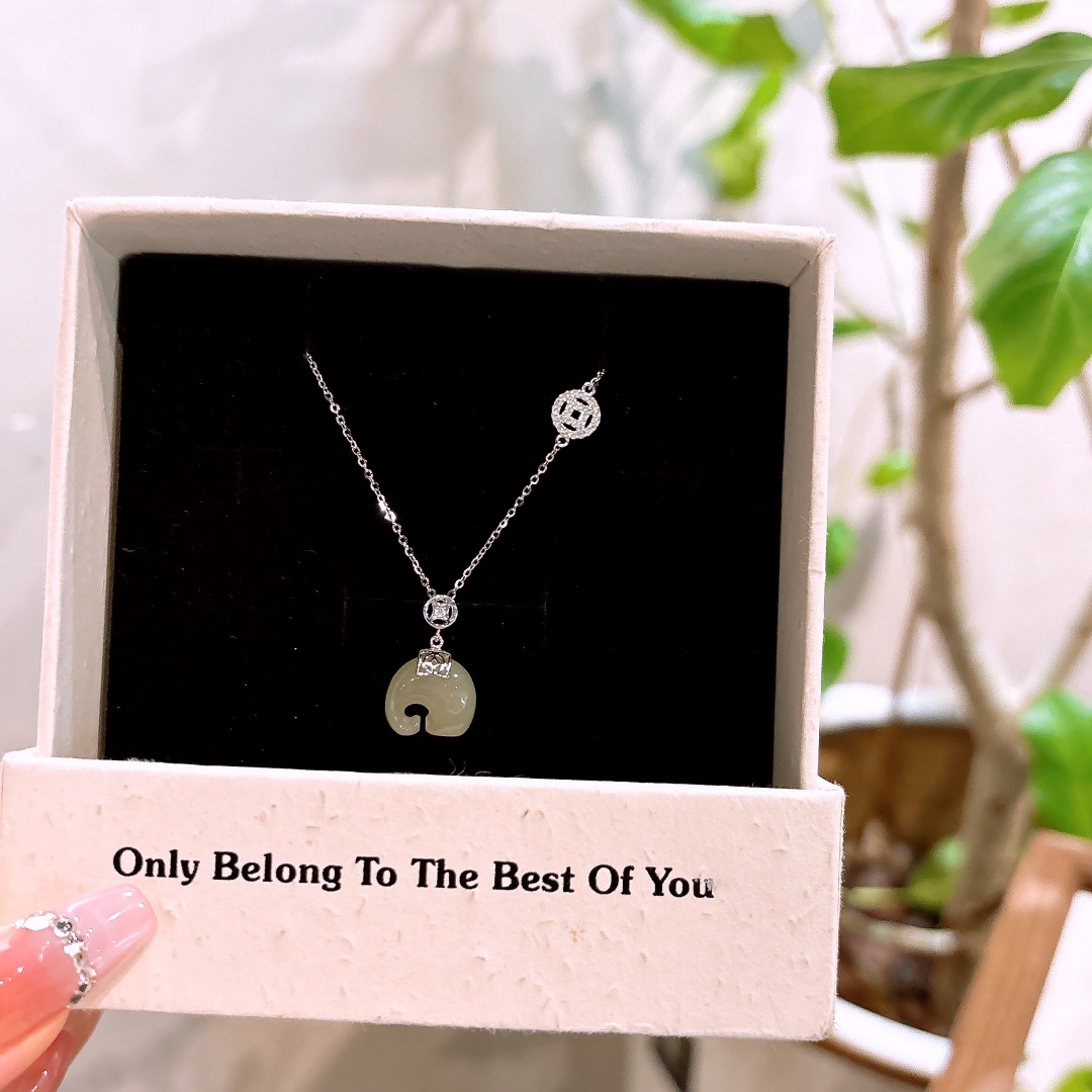 925 Silver Hetian Jade Necklace Minimalist Spring Festival Silver