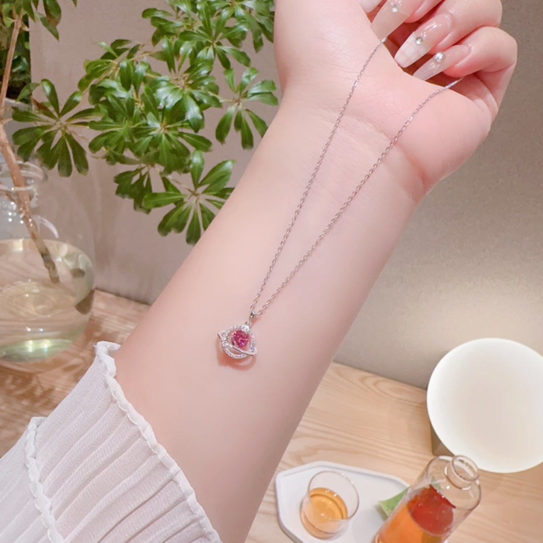 Fine Silver Moissanite Necklace Light Luxury Anniversary Silver