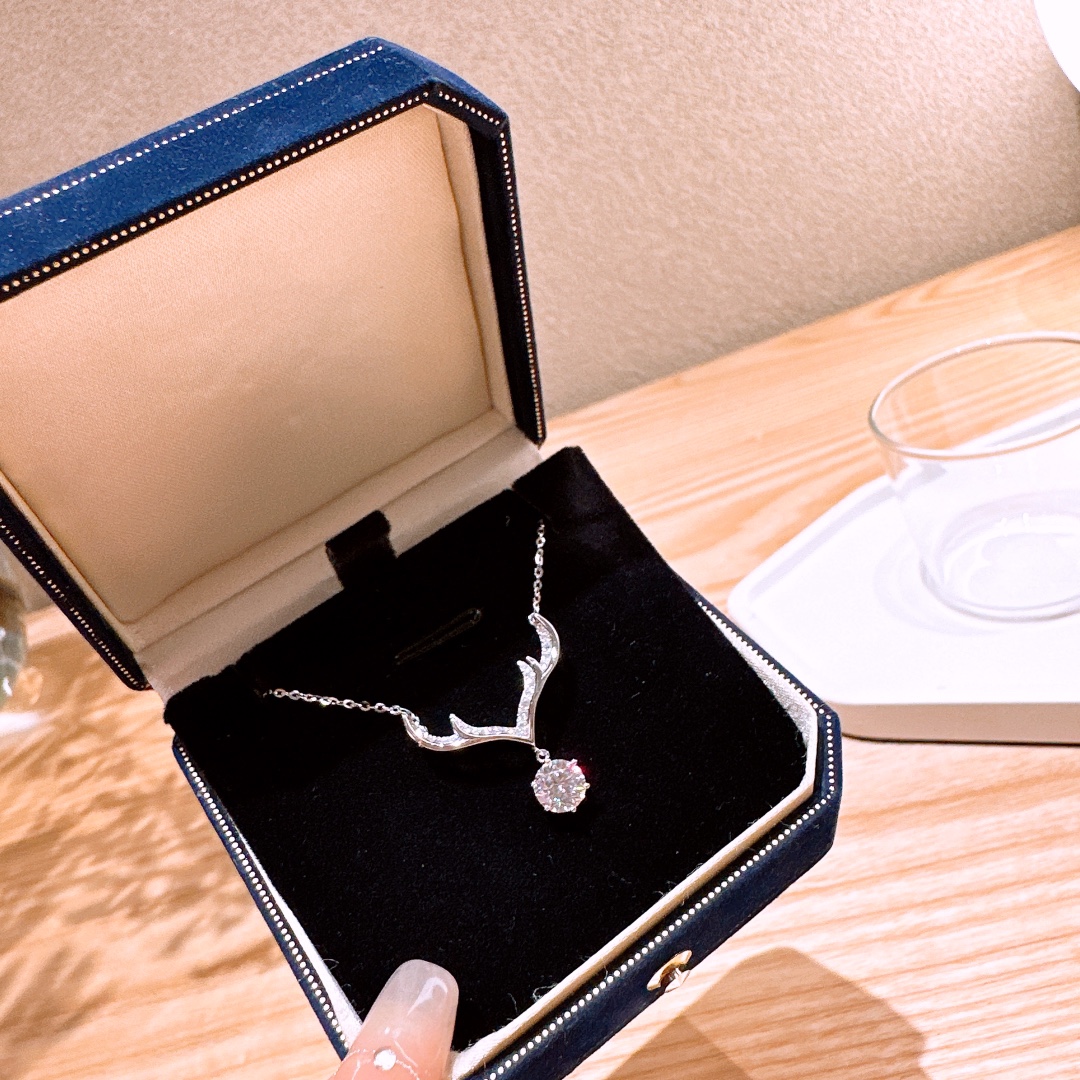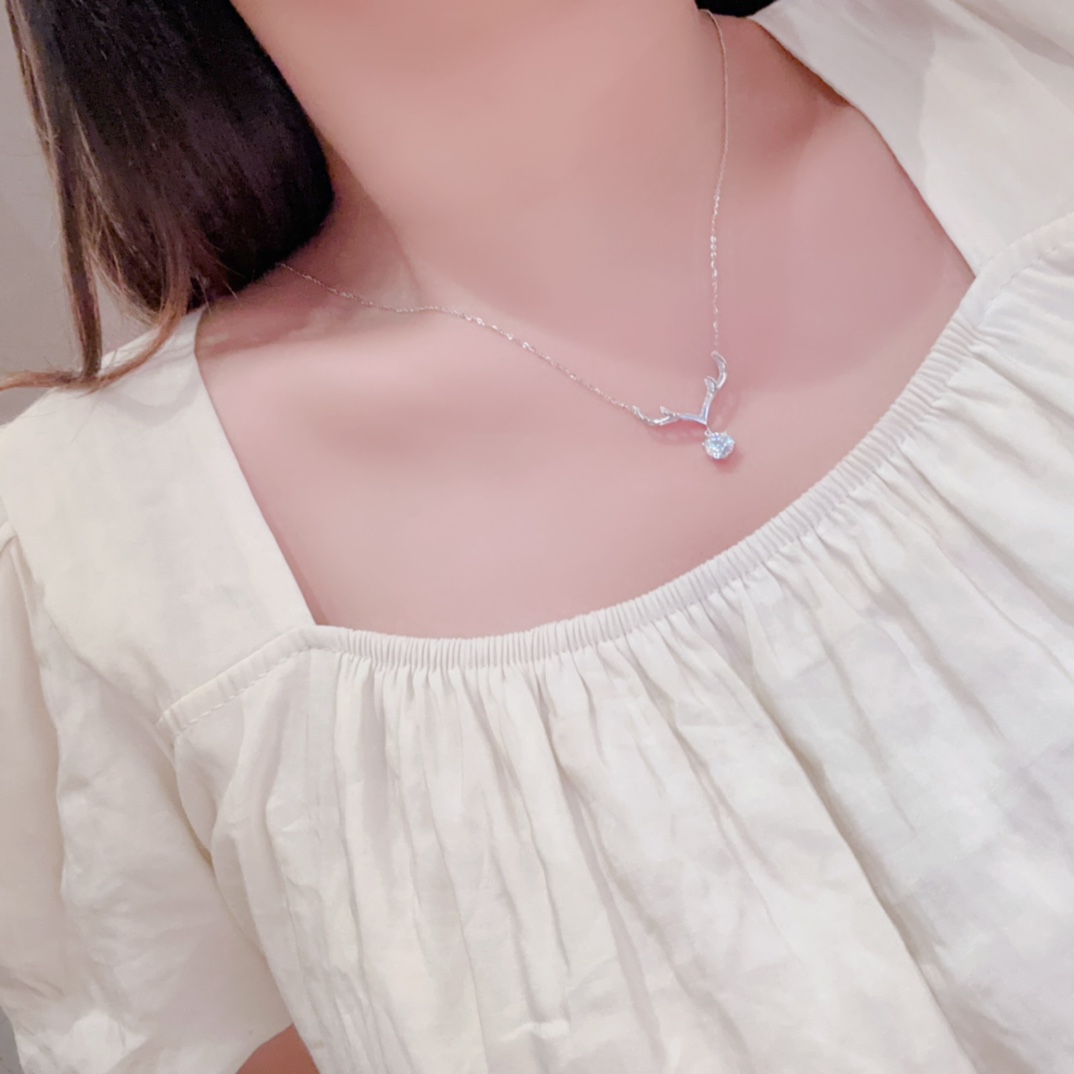 Solid Silver Moissanite Necklace Fashion Party Silver
