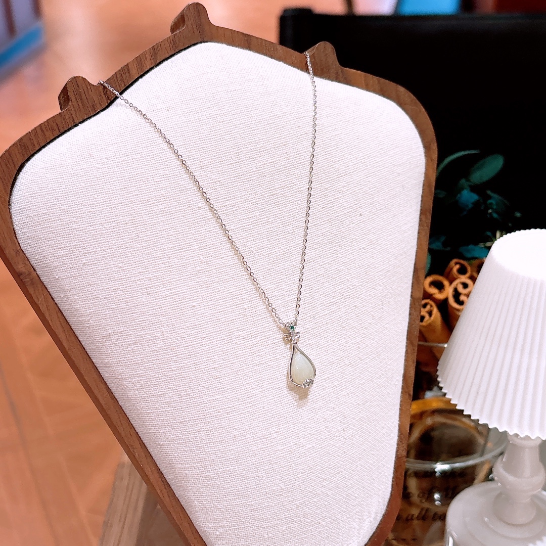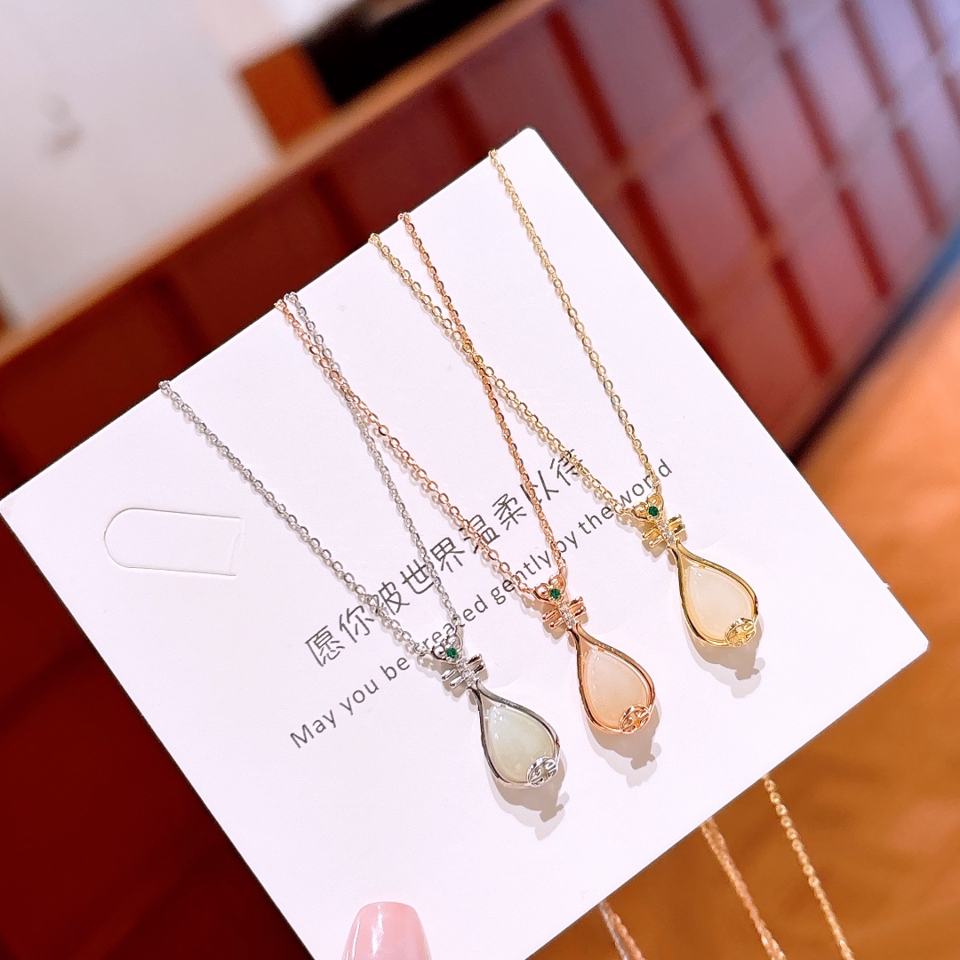 Nickel Free Silver Hetian Jade Necklace Pure Spring Festival Gold
