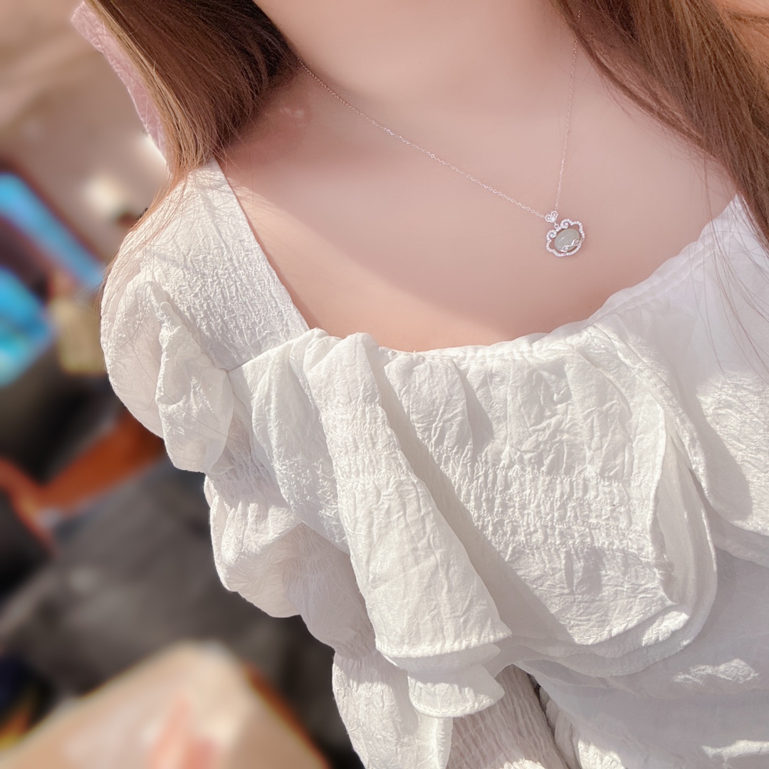 Nickel Free Silver Hetian Jade Necklace Minimalist Date Night Silver