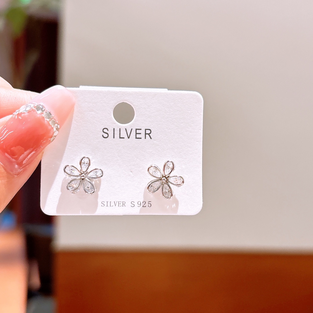 S925 Sterling Silver Earrings French Annual Party Silver