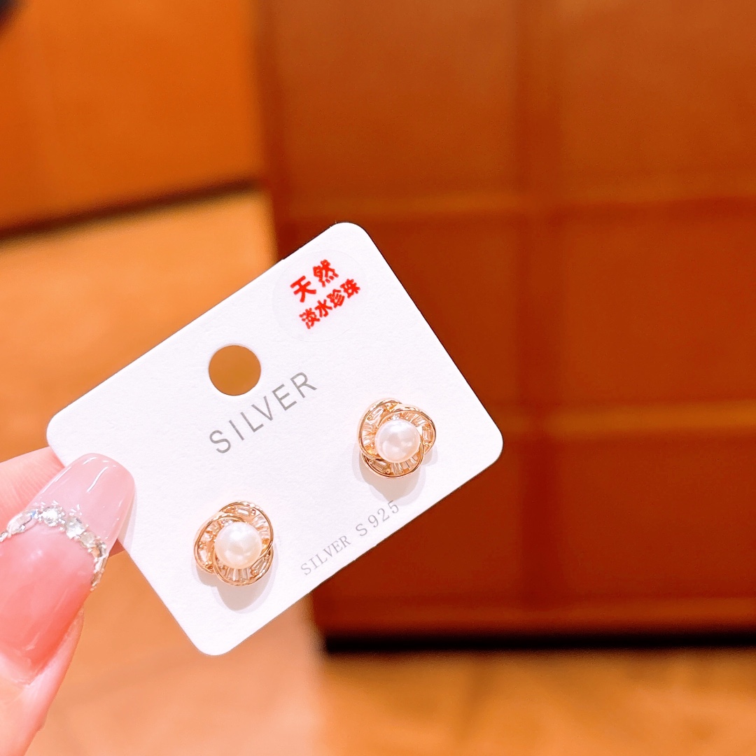 Solid Silver Freshwater Pearl Studs Minimalist Annual Party Gold