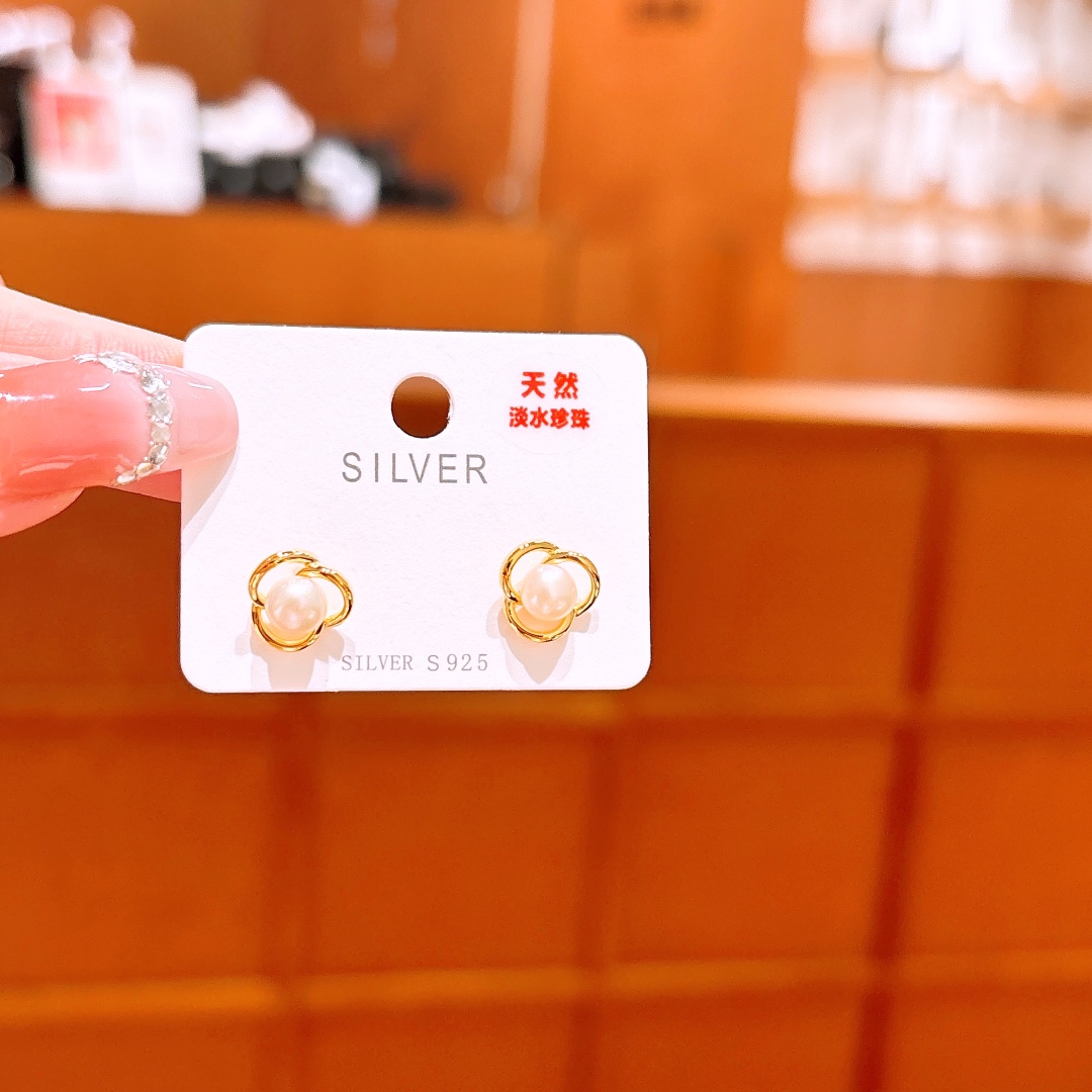 Nickel Free Silver Freshwater Pearl Studs Artistic Date Night Silver