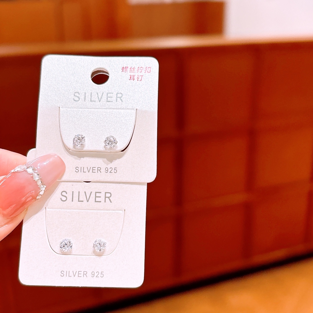 925 Silver Screw-back Studs Delicate Mother's Birthday Silver