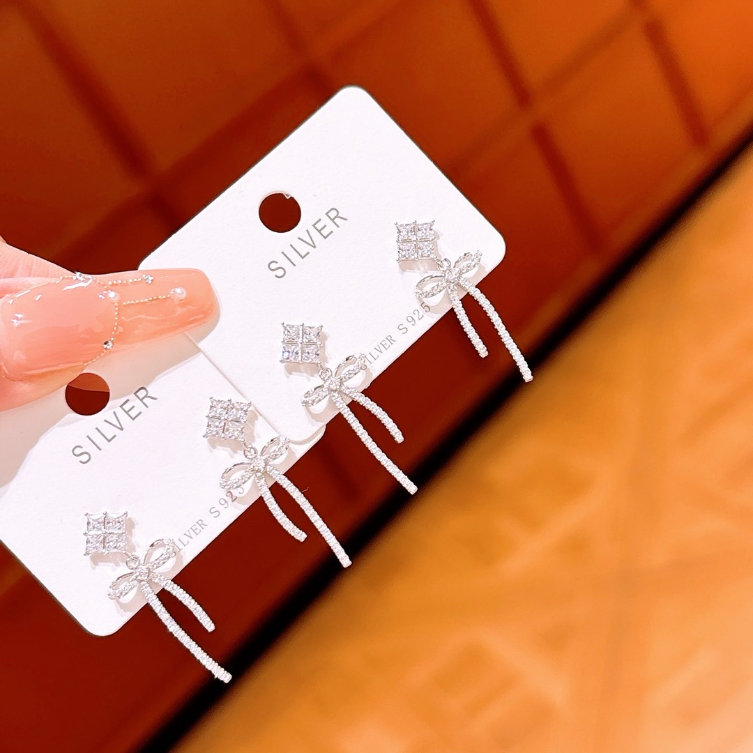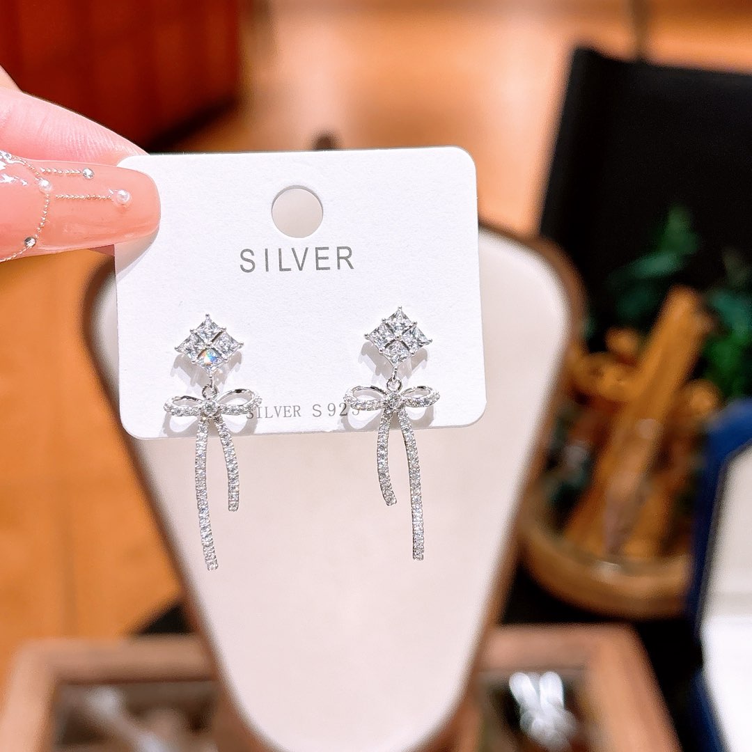 S925 Sterling Silver Earrings Elegant Office Gold