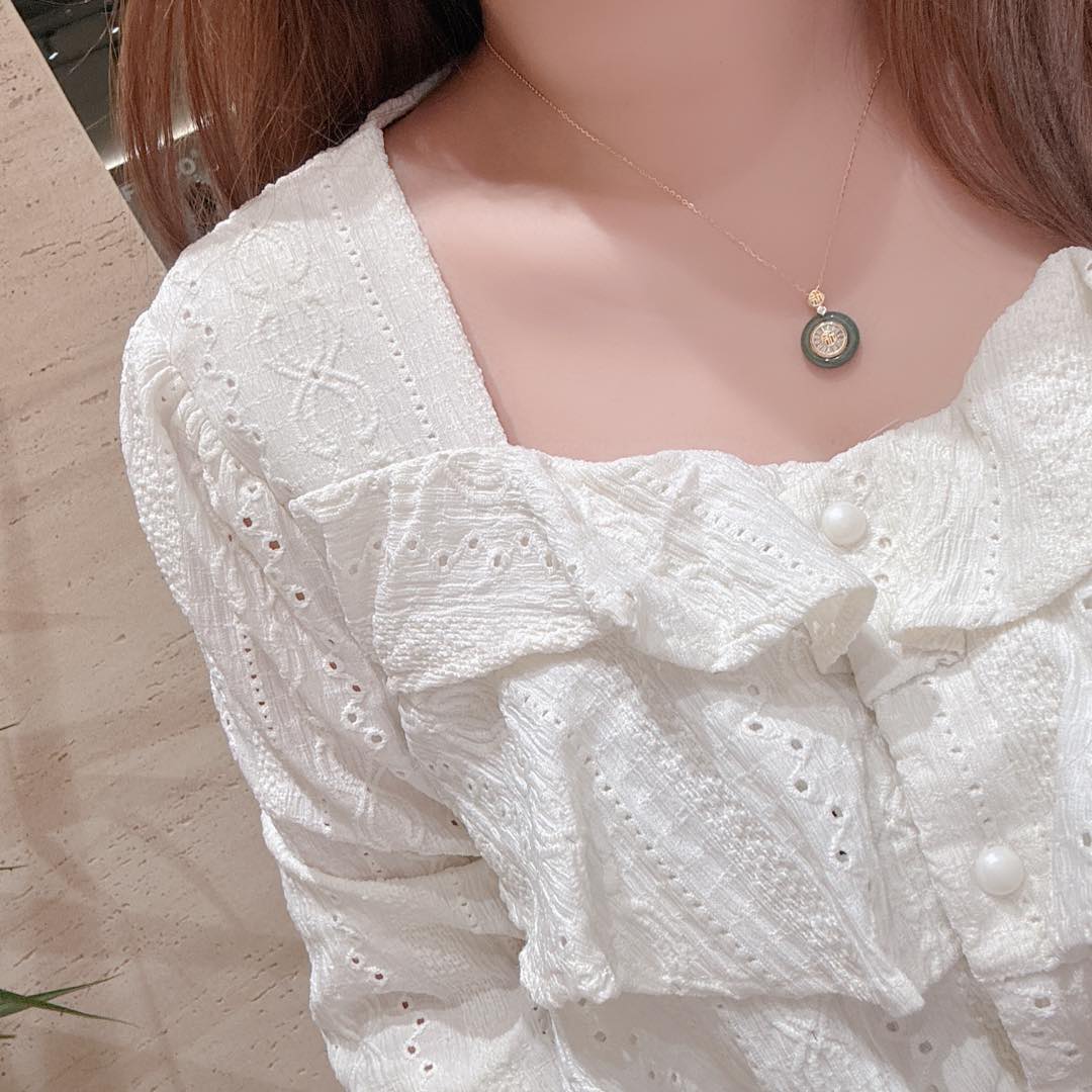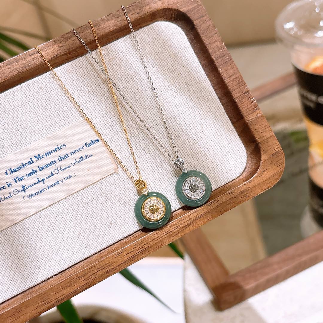 S925 Sterling Silver Jadeite Necklace Girly Workplace Gold
