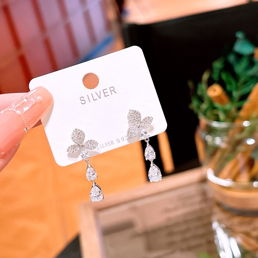 Fine Silver Earrings Korean Style Party Gold