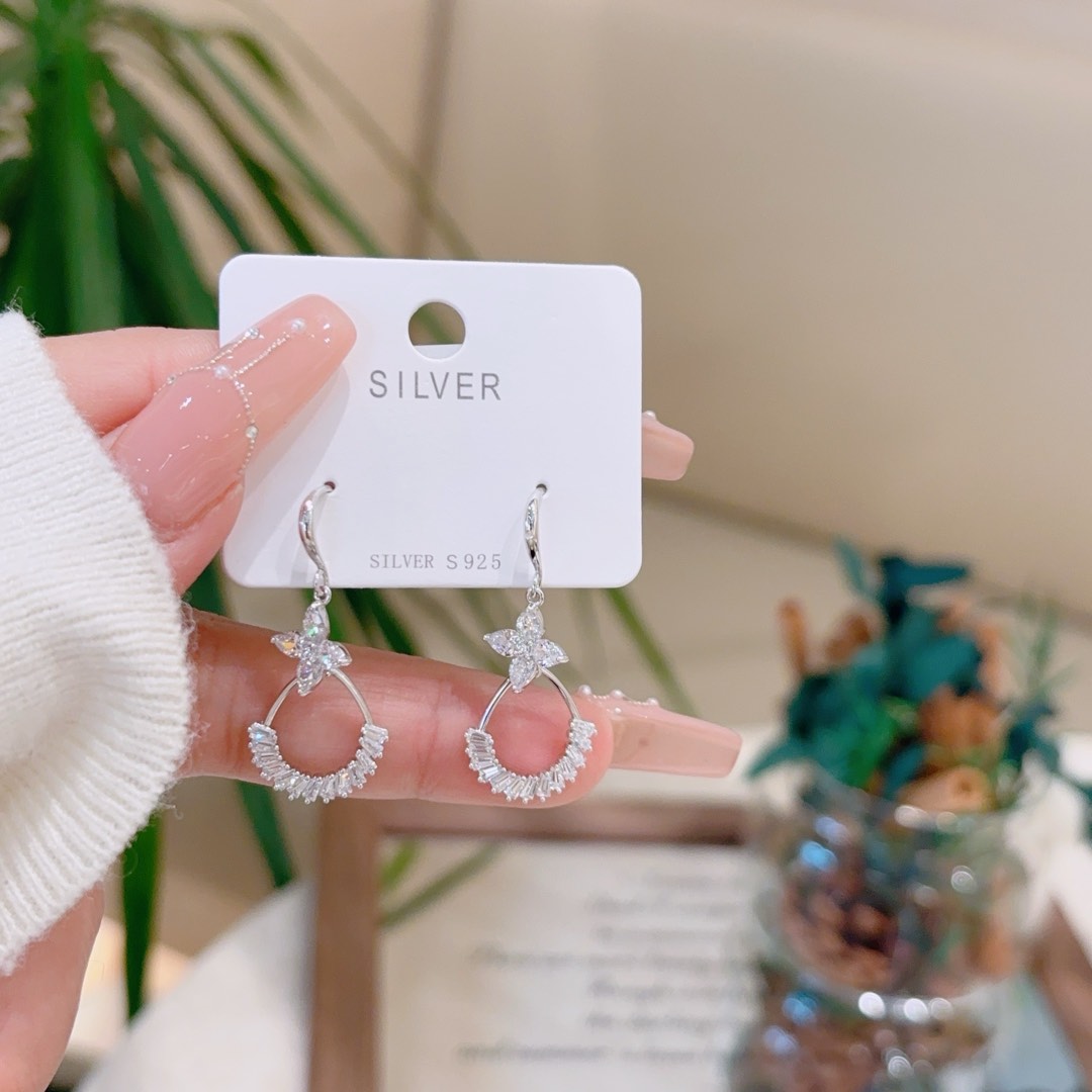 ガーリーアレルギー対応シルバードロップ&スレッドイヤリングシルバー クリスマス