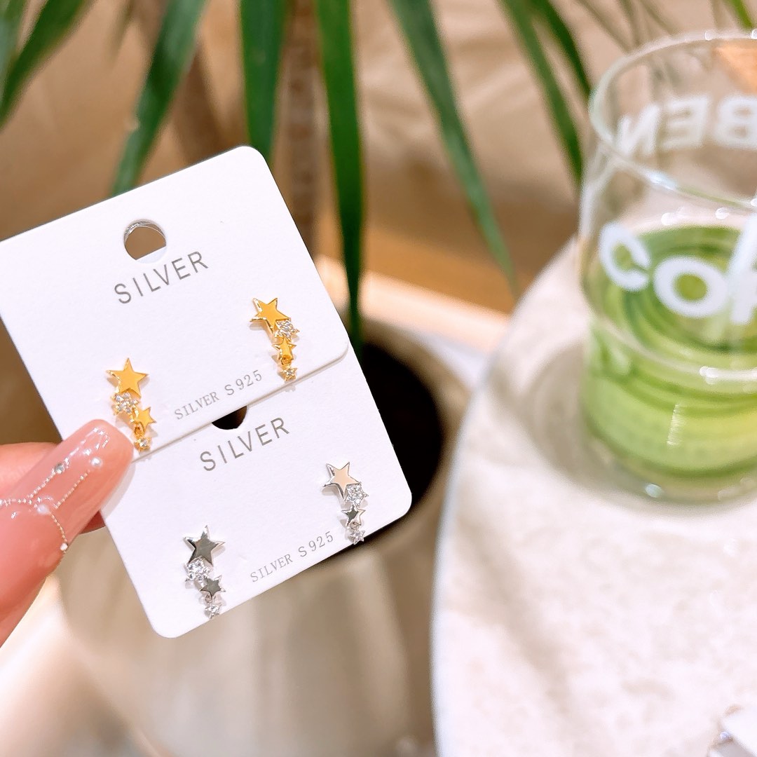 S925 Sterling Silver Earrings Fashion Father's Day Gold