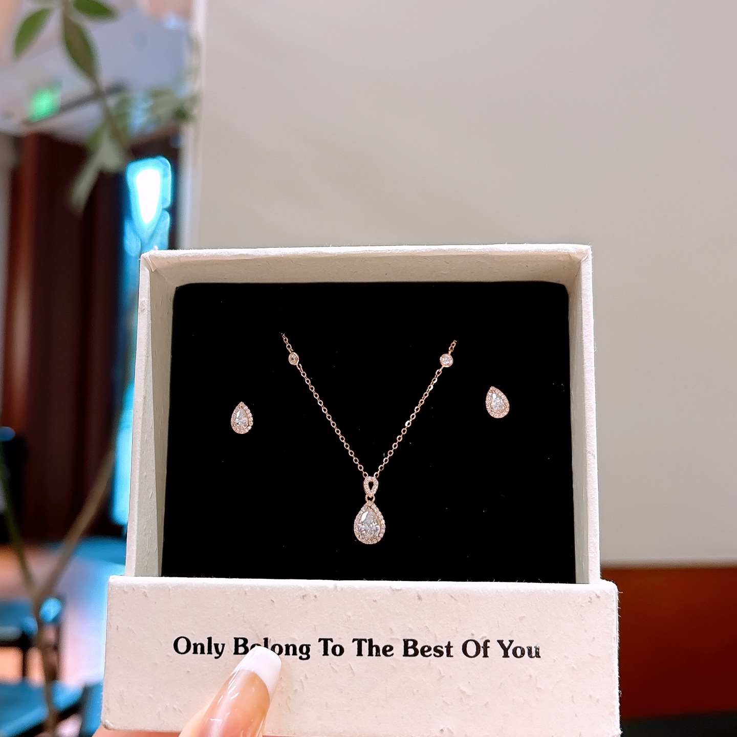 925 Silver Earrings & Necklace Set Sweet Date Night Gold