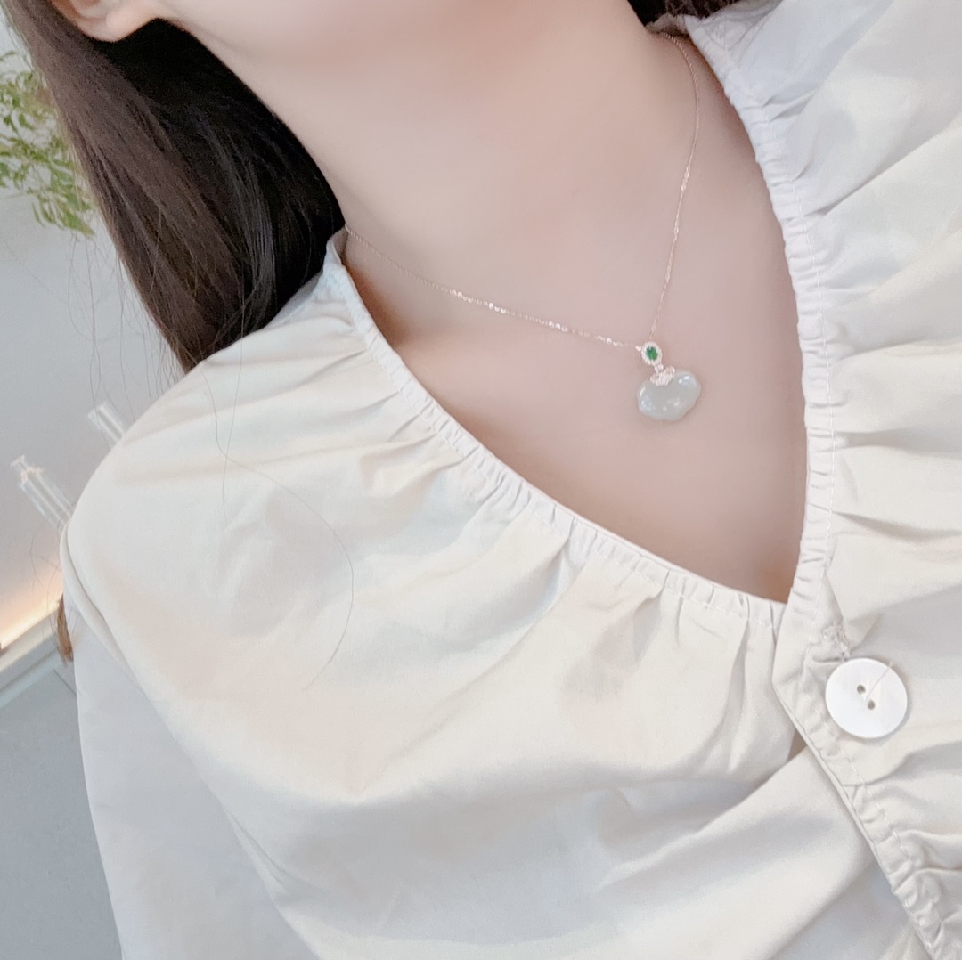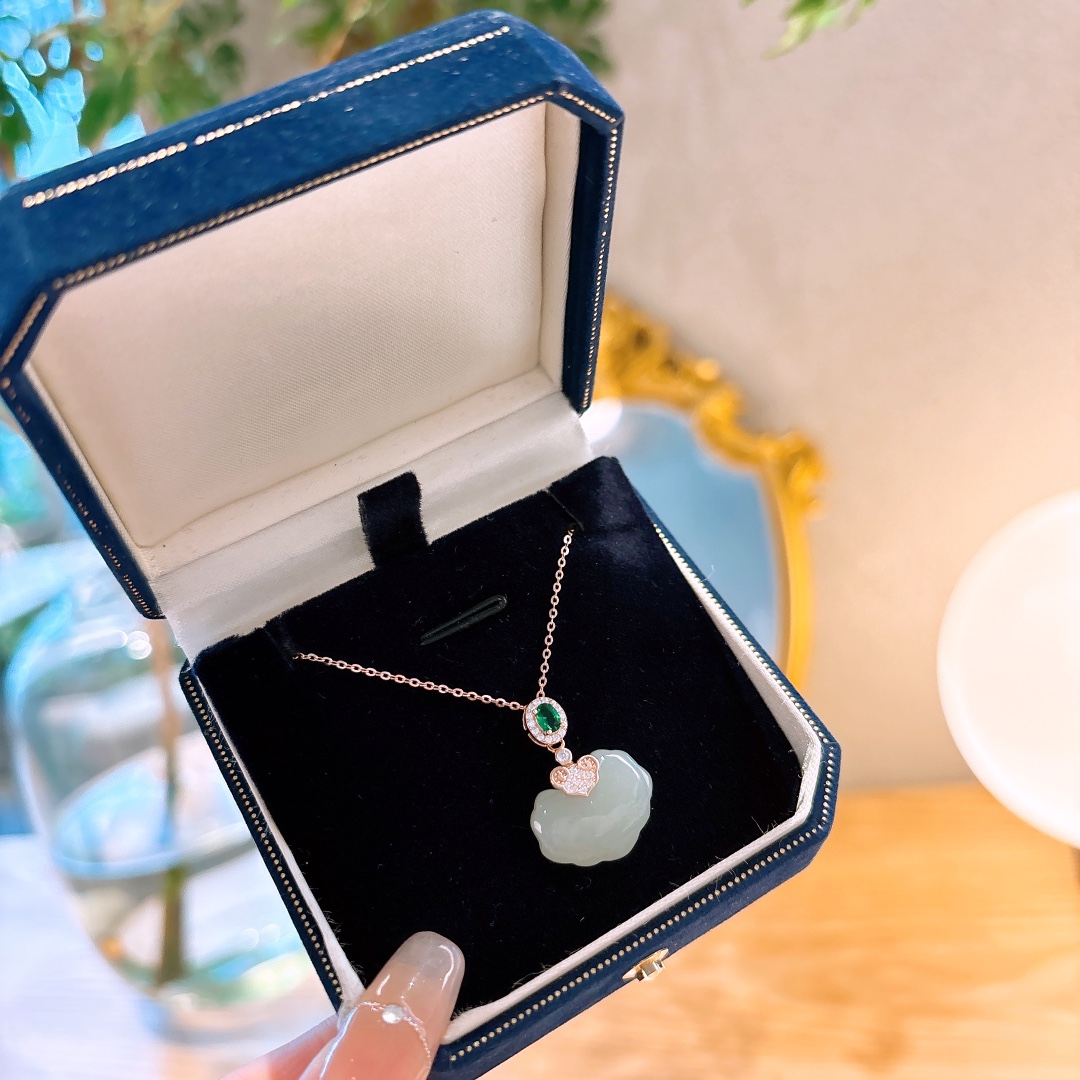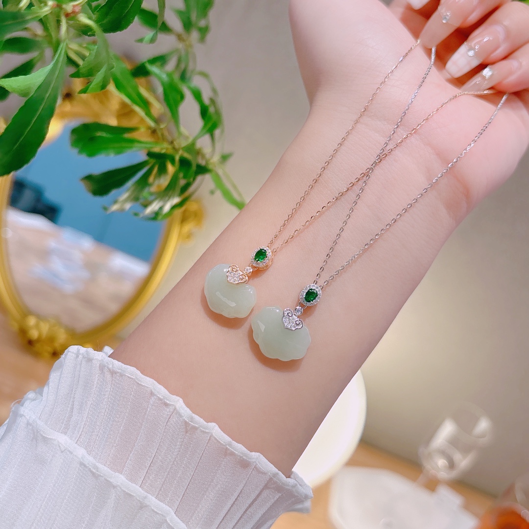 Fine Silver Hetian Jade Necklace Gentle Wedding Gold