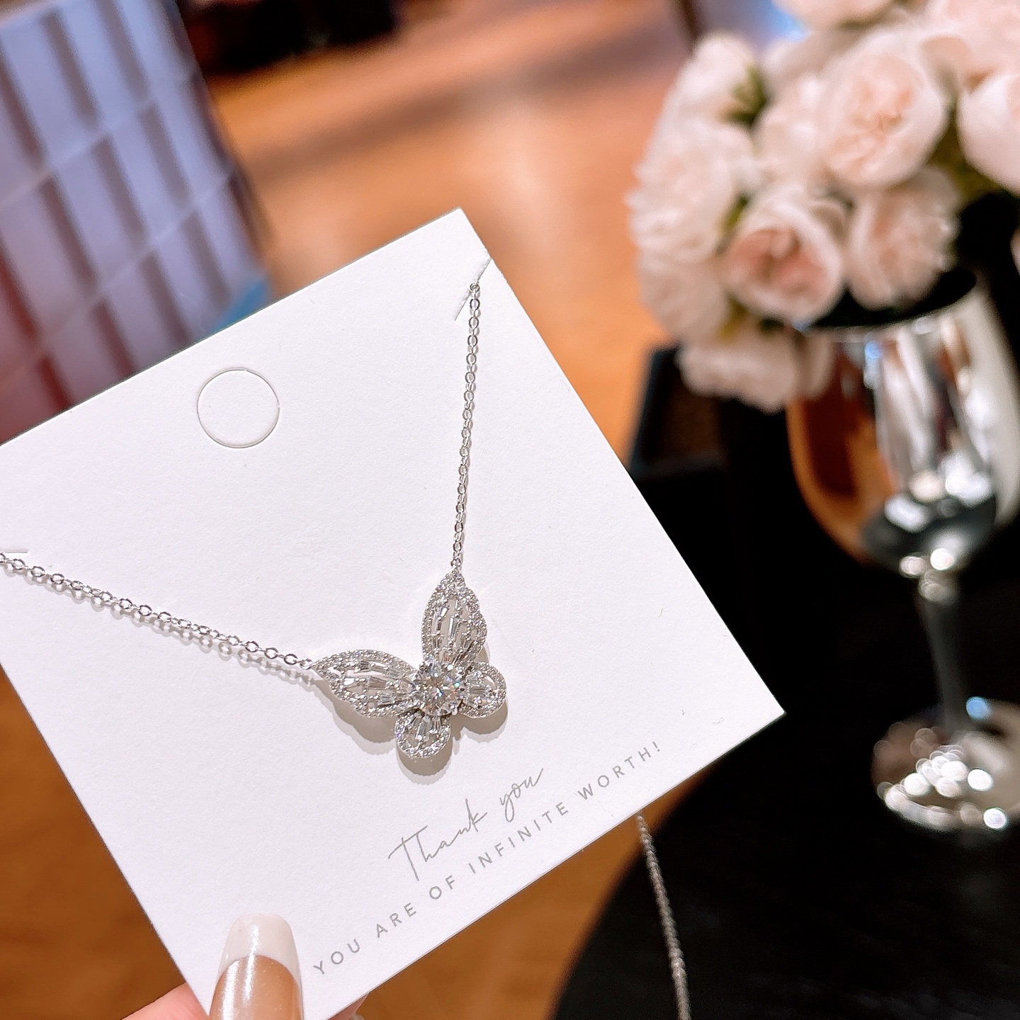 Fine Silver Moissanite Necklace Girly Banquet Silver