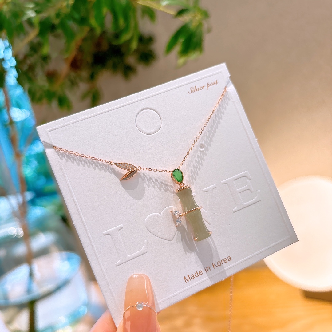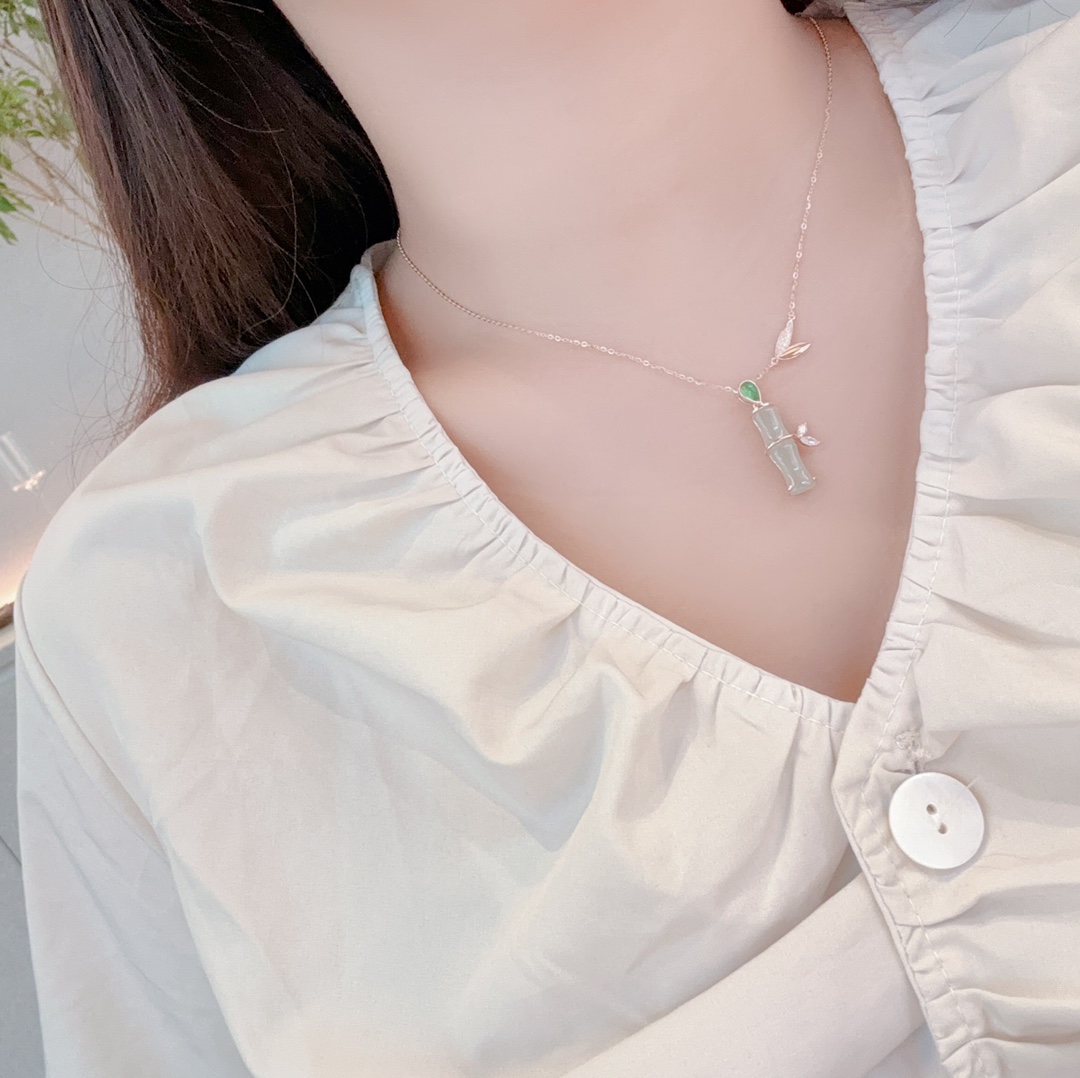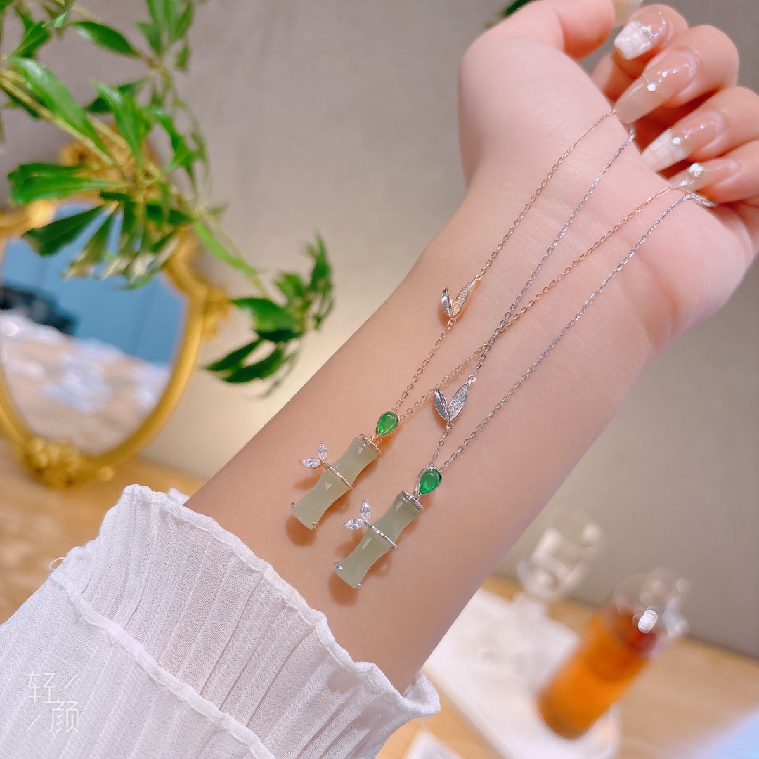S925 Sterling Silver Hetian Jade Necklace Forest Engagement Gold