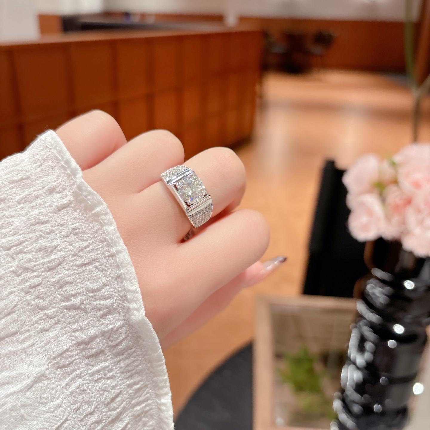 925 Silver Men's Moissanite Ring Playful Wedding Registration Silver