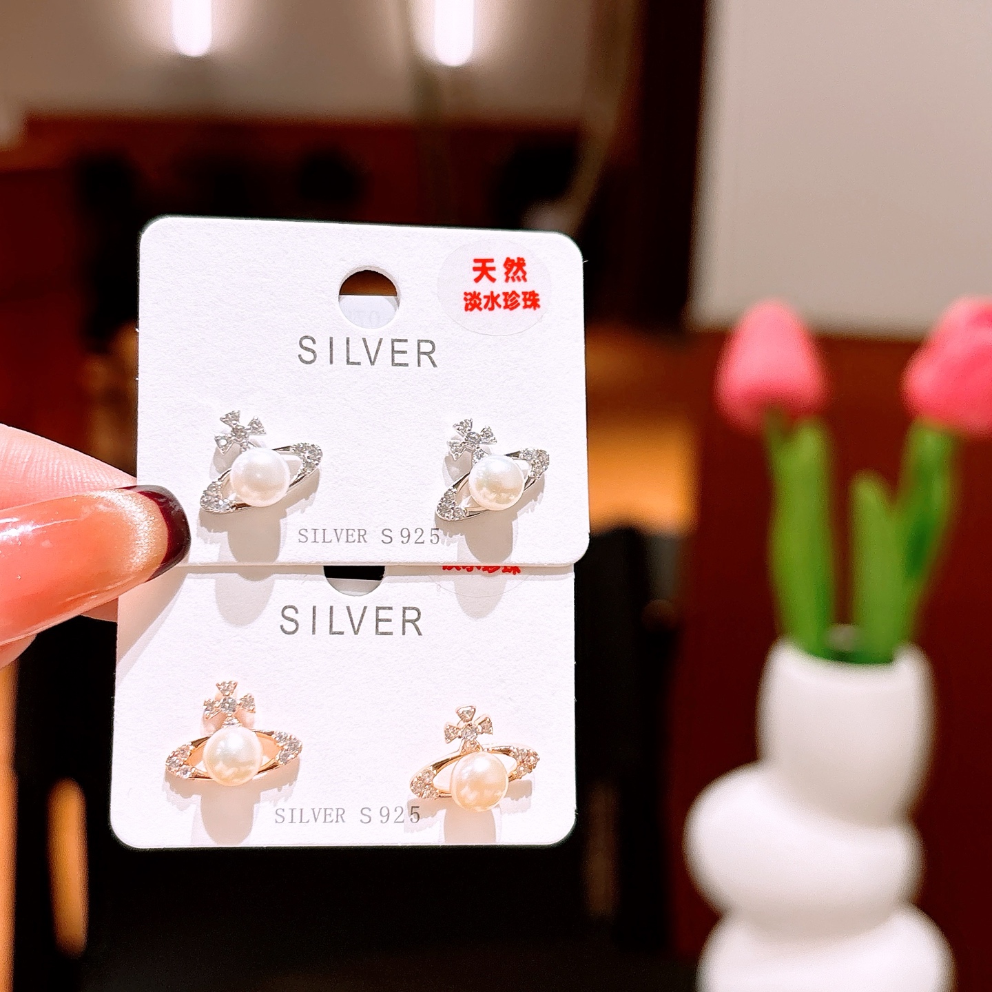 Low Allergy Silver Freshwater Pearl Studs French New Year Silver